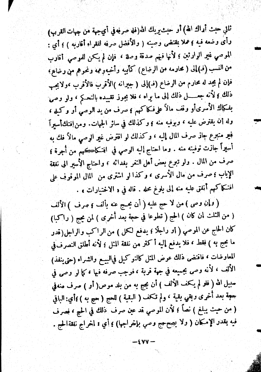 ثُلُثِي حَيْثُ أَرَاك اللَّهُ) أَوْ حَيْثُ يُرِيكَ اللَّهُ (فَلَهُ صَرْفُهُ فِي أَيِّ جِهَةٍ مِنْ جِهَاتِ الْقُرَبِ) رَأَى وَضْعَهُ فِيهِ؛ عَمَلًا بِمُقْتَضَى وَصِيَّتِهِ (وَالْأَفْضَلُ صَرْفُهُ لِفُقَرَاءِ أَقَارِبِهِ) ؛ أَيْ: الْمُوصِي غَيْرِ الْوَارِثِينَ؛ لِأَنَّهَا فِيهِمْ صَدَقَةٌ وَصِلَةٌ، فَإِنْ لَمْ يَكُنْ لِلْمُوصِي أَقَارِبُ مِنْ النَّسَبِ (فَ) إلَى (مَحَارِمِهِ مِنْ الرَّضَاعِ) كَأَبِيهِ وَأَخِيهِ وَعَمِّهِ وَنَحْوِهِمْ مِنْ رَضَاعٍ، فَإِنْ لَمْ يَجِدْ لَهُ مَحَارِمَ مِنْ الرَّضَاعِ (ف) إلَى (جِيرَانِهِ) الْأَقْرَبَ فَالْأَقْرَبَ، وَلَا يَجِبُ ذَلِكَ؛ لِأَنَّهُ جَعَلَ ذَلِكَ إلَى مَا يَرَاهُ، فَلَا يَجُوزُ تَقْيِيدُهُ بِالتَّحَكُّمِ، وَلَوْ وَصَّى بِفِكَاكِ الْأَسْرَى أَوْ وَقَفَ مَالًا عَلَى فِكَاكِهِمْ؛ صُرِفَ مِنْ يَدِ الْوَصِيِّ أَوْ وَكِيلِهِ، وَلَهُ أَنْ يَقْتَرِضَ عَلَيْهِ، وَيُوَفِّيَهُ مِنْهُ؛ وَكَذَلِكَ فِي سَائِرِ الْجِهَاتِ. وَمَنْ افْتَكَّ أَسِيرًا غَيْرَ مُتَبَرِّعٍ جَازَ صَرْفُ الْمَالِ إلَيْهِ، وَكَذَلِكَ لَوْ اقْتَرَضَ غَيْرُ الْوَصِيِّ مَالًا فَكَّ بِهِ أَسِيرًا جَازَتْ تَوْفِيَتُهُ مِنْهُ. وَمَا احْتَاجَ إلَيْهِ الْوَصِيُّ فِي افْتِكَاكِهِمْ مِنْ أُجْرَةٍ صُرِفَ مِنْ الْمَالِ. وَلَوْ تَبَرَّعَ بَعْضُ أَهْلِ الثَّغْرِ بِفِدَائِهِ، وَاحْتَاجَ الْأَسِيرُ إلَى نَفَقَةِ الْإِيَابِ؛ صُرِفَ مِنْ مَالِ الْأَسْرَى، وَكَذَا لَوْ اشْتَرَى مِنْ الْمَالِ الْمَوْقُوفِ عَلَى افْتِكَاكِهِمْ أُنْفِقَ عَلَيْهِ مِنْهُ إلَى بُلُوغِ مَحِلِّهِ. قَالَهُ فِي " الِاخْتِيَارَاتِ ".