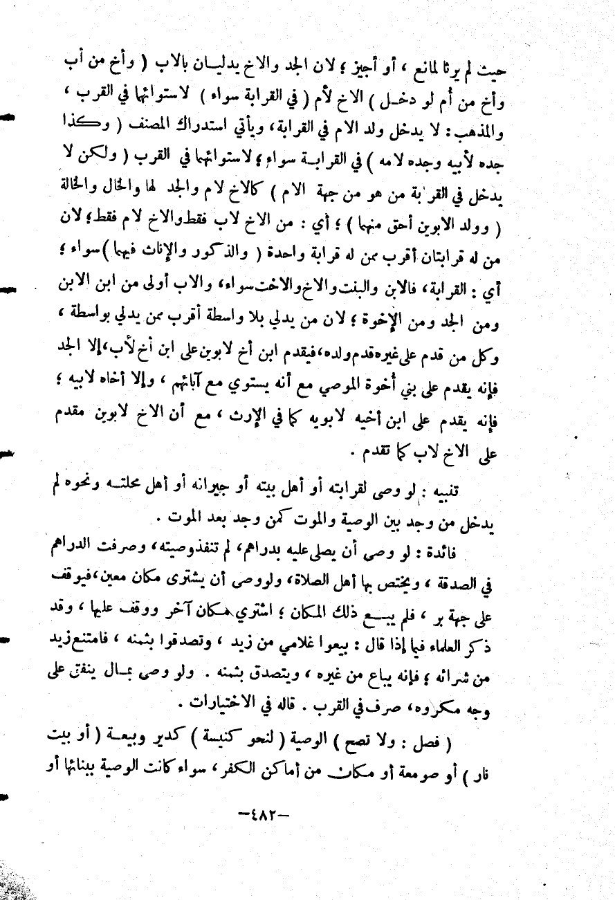 [تَنْبِيهٌ وَصَّى لِقَرَابَتِهِ أوأهل بَيْتِهِ أَوْ جِيرَانِهِ أَوْ أَهْلِ مَحَلَّتِهِ وَنَحْوِهِ]