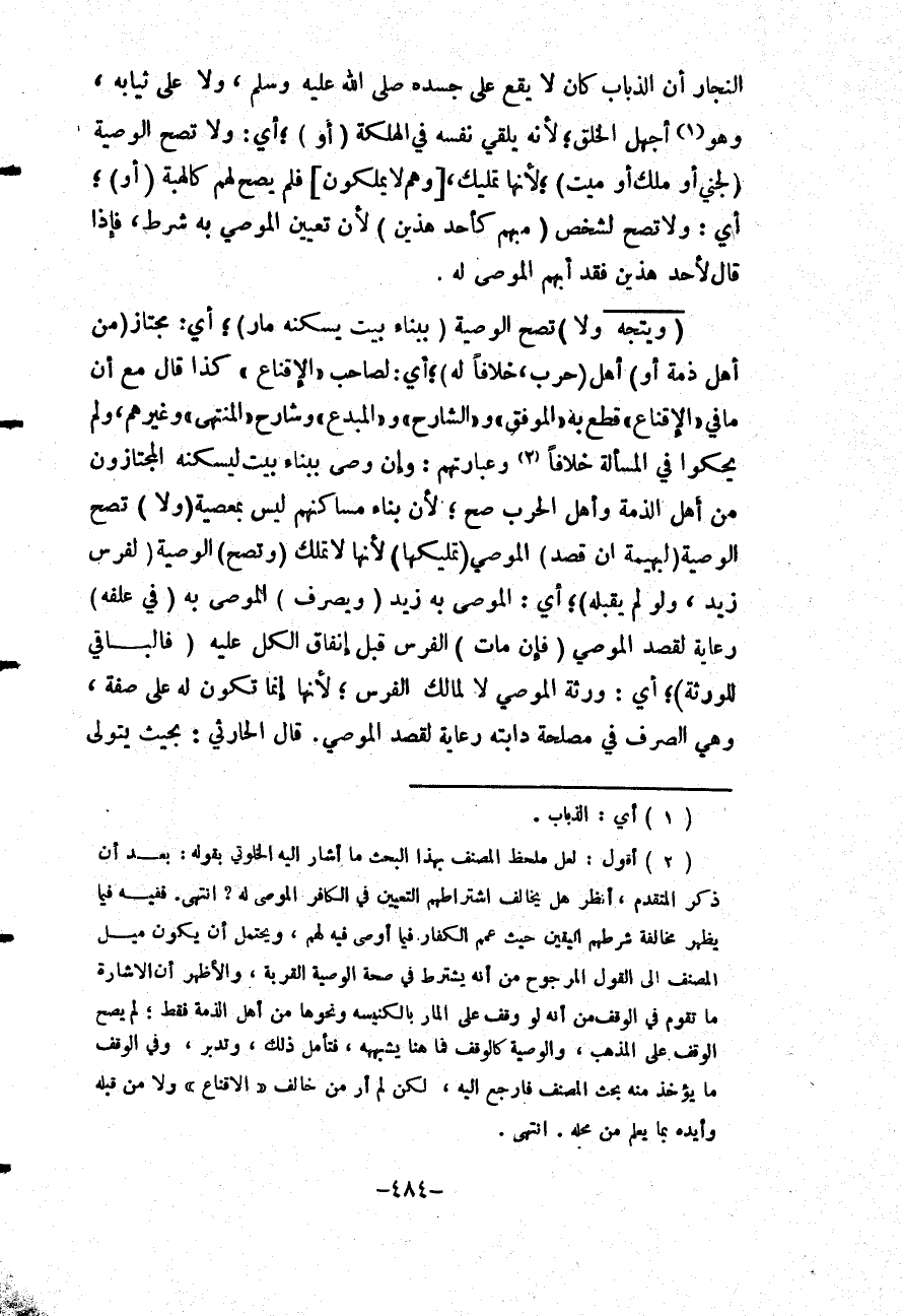 (وَيَتَّجِهُ وَلَا) تَصِحُّ الْوَصِيَّةُ (بِبِنَاءِ بَيْتٍ يَسْكُنُهُ مَارٌّ) ؛ أَيْ: مُجْتَازٌ (مِنْ أَهْلِ ذِمَّةٍ أَوْ) أَهْلِ (حَرْبٍ، خِلَافًا لَهُ) ؛ أَيْ: لِصَاحِبِ " الْإِقْنَاعِ " كَذَا قَالَ مَعَ أَنَّ مَا فِي " الْإِقْنَاعِ " قَطَعَ بِهِ " الْمُوَفَّقُ " وَ " الشَّارِحُ " وَ " الْمُبْدِعُ " وَشَارِحُ " الْمُنْتَهَى " وَغَيْرُهُمْ، وَلَمْ يَحْكُوا فِي الْمَسْأَلَةِ خِلَافًا، وَعِبَارَتُهُمْ: وَإِنْ وَصَّى بِبِنَاءِ بَيْتٍ لِيَسْكُنَهُ الْمُجْتَازُونَ مِنْ أَهْلِ الذِّمَّةِ وَأَهْلِ الْحَرْبِ صَحَّ؛ لِأَنَّ بِنَاءَ مَسَاكِنِهِمْ لَيْسَ بِمَعْصِيَةٍ.