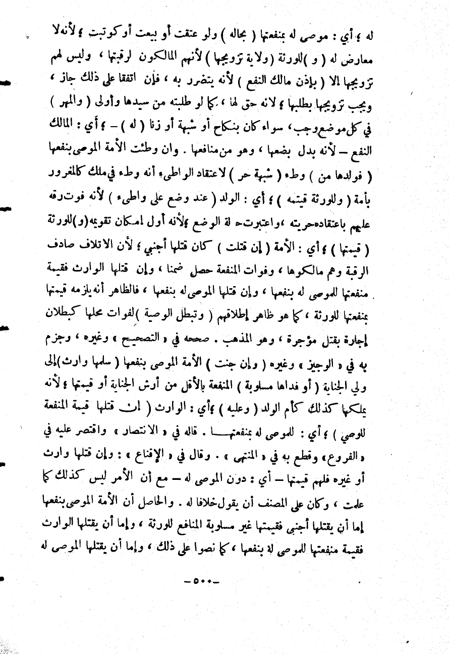(وَإِنْ جَنَتْ) الْأَمَةُ الْمُوصَى بِنَفْعِهَا (سَلَّمَهَا وَارِثٌ) إلَى وَلِيِّ الْجِنَايَةِ (أَوْ فَدَاهَا مَسْلُوبَةَ) الْمَنْفَعَةِ بِالْأَقَلِّ مِنْ أَرْشِ الْجِنَايَةِ أَوْ قِيمَتِهَا؛ لِأَنَّهُ يَمْلِكُهَا كَذَلِكَ كَأُمِّ الْوَلَدِ (وَعَلَيْهِ) ؛ أَيْ: الْوَارِثِ (إنْ قَتَلَهَا قِيمَةُ الْمَنْفَعَةِ لِلْوَصِيِّ) ؛ أَيْ: لِلْمُوصَى لَهُ بِمَنْفَعَتِهَا. قَالَهُ فِي " الِانْتِصَارِ " وَاقْتَصَرَ عَلَيْهِ فِي " الْفُرُوعِ " وَقَطَعَ بِهِ فِي " الْمُنْتَهَى ". وَقَالَ فِي " الْإِقْنَاعِ ": وَإِنْ قَتَلَهَا وَارِثٌ أَوْ غَيْرُهُ فَلَهُمْ قِيمَتُهَا - أَيْ: دُونَ الْمُوصَى لَهُ - مَعَ أَنَّ الْأَمْرَ لَيْسَ كَذَلِكَ كَمَا عَلِمْتَ، وَكَانَ عَلَى الْمُصَنِّفِ أَنْ يَقُولَ خِلَافًا لَهُ. وَالْحَاصِلُ أَنَّ الْأَمَةَ الْمُوصَى بِنَفْعِهَا إمَّا أَنْ يَقْتُلَهَا أَجْنَبِيٌّ فَقِيمَتُهَا غَيْرُ مَسْلُوبَةِ الْمَنَافِعِ لِلْوَرَثَةِ، وَإِمَّا أَنْ يَقْتُلَهَا الْوَارِثُ فَقِيمَةُ مَنْفَعَتِهَا لِلْمُوصَى لَهُ بِنَفْعِهَا، كَمَا نَصُّوا عَلَى ذَلِكَ، وَإِمَّا أَنْ يَقْتُلَهَا الْمُوصَى لَهُ