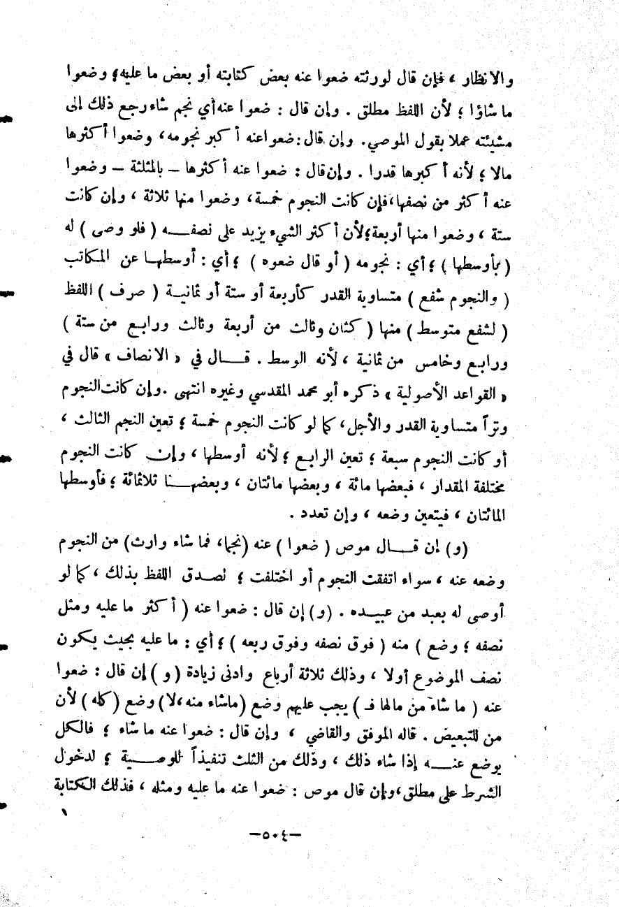 (فَلَوْ وَصَّى) لَهُ (بِأَوْسَطِهَا) ؛ أَيْ: نُجُومِهِ (أَوْ قَالَ ضَعُوهُ) ؛ أَيْ: أَوْسَطَهَا عَنْ الْمُكَاتَبِ (وَالنُّجُومُ شَفْعٌ) مُتَسَاوِيَةُ الْقَدْرِ كَأَرْبَعَةٍ أَوْ سِتَّةٍ أَوْ ثَمَانِيَةٍ (صُرِفَ) اللَّفْظُ (لِشَفْعٍ مُتَوَسِّطٍ) مِنْهَا (كَثَانٍ وَثَالِثٍ مِنْ أَرْبَعَةٍ وَثَالِثٍ وَرَابِعٍ مِنْ سِتَّةٍ) وَرَابِعٍ وَخَامِسٍ مِنْ ثَمَانِيَةٍ، لِأَنَّهُ الْوَسَطُ. قَالَ فِي " الْإِنْصَافِ " قَالَ فِي " الْقَوَاعِدِ الْأُصُولِيَّةِ " ذَكَرَهُ أَبُو مُحَمَّدٍ الْمَقْدِسِيَّ وَغَيْرُهُ انْتَهَى. وَإِنْ كَانَتْ النُّجُومُ وَتْرًا مُتَسَاوِيَةَ الْقَدْرِ وَالْأَجَلِ، كَمَا لَوْ كَانَتْ النُّجُومُ خَمْسَةً؛ تَعَيَّنَ النَّجْمُ الثَّالِثُ، أَوْ كَانَتْ النُّجُومُ سَبْعَةً؛ تَعَيَّنَ الرَّابِعُ؛ لِأَنَّهُ أَوْسَطُهَا، وَإِنْ كَانَتْ النُّجُومُ مُخْتَلِفَةَ الْمِقْدَارِ، فَبَعْضُهَا مِائَةٌ، وَبَعْضُهَا مِائَتَانِ، وَبَعْضُهَا ثَلَاثُمِائَةٍ؛ فَأَوْسَطُهَا الْمِائَتَانِ، فَيَتَعَيَّنُ وَضْعُهُ، وَإِنْ تَعَدَّدَ.
