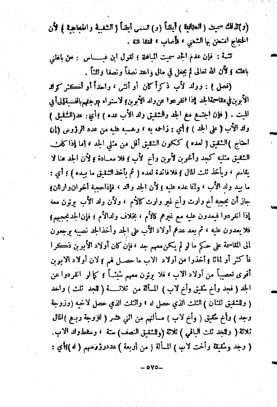(فَصْلٌ) : وَوَلَدٌ لِأَبٍ ذَكَرًا كَانَ أَوْ أُنْثَى، وَاحِدًا أَوْ أَكْثَرَ كَوَلَدِ الْأَبَوَيْنِ فِي مُقَاسَمَةِ الْجَدِّ إذَا انْفَرَدُوا عَنْ وَلَدِ الْأَبَوَيْنِ؛ لِاسْتِوَاءِ دَرَجَتِهِمْ بِالنِّسْبَةِ إلَى أَبِي الْمَيِّتِ. (فَإِنْ) اجْتَمَعَ مَعَ الْجَدِّ وَالشَّقِيقِ وَلَدُ الْأَبِ عَدَّهُ؛ أَيْ: عَدَّ (الشَّقِيقُ) وَلَدَ الْأَبِ (عَلَى الْجَدِّ) ؛ أَيْ: زَاحَمَهُ بِهِ، وَحَسِبَهُ عَلَيْهِ مِنْ عَدَدِ الرُّءُوسِ (إنْ احْتَاجَ) الشَّقِيقُ (لِعَدِّهِ) كَكَوْنِ الشَّقِيقِ أَقَلَّ مِنْ مِثْلِيِّ الْجَدِّ، أَمَّا إذَا كَانَ الشَّقِيقُ مِثْلَيْهِ كَجَدٍّ وَأَخَوَيْنِ لِأَبَوَيْنِ وَأَخٍ لِأَبٍ؛ فَلَا مُعَادَّةَ؛ لِأَنَّ الْجَدَّ هُنَا لَا يُقَاسِمُ، وَيَأْخُذُ ثُلُثَ الْمَالِ؛ فَلَا فَائِدَةَ لِعَدِّهِ (ثُمَّ يَأْخُذُ الشَّقِيقُ مَا بِيَدِهِ) ؛ أَيْ: مَا بِيَدِ وَلَدِ الْأَبِ، وَإِنَّمَا عَدَّهُ عَلَيْهِ لِأَنَّ الْجَدَّ وَالِدٌ، فَإِذَا حَجَبَهُ أَخَوَانِ وَارِثَانِ؛ جَازَ أَنْ يَحْجُبَهُ أَخٌ وَارِثٌ وَأَخٌ غَيْرُ وَارِثٍ كَالْأُمِّ، وَلِأَنَّ وَلَدَ الْأَبِ يَرِثُونَ مَعَهُ إذَا انْفَرَدُوا فَيُعَدُّونَ عَلَيْهِ مَعَ غَيْرِهِمْ كَالْأُمِّ، بِخِلَافِ وَلَدِ الْأُمِّ، فَإِنَّ الْجَدَّ يَحْجُبُهُمْ، فَلَا يُعَدُّونَ عَلَيْهِ، ثُمَّ بَعْدَ عَدِّهِمْ أَوْلَادَ الْأَبِ عَلَى الْجَدِّ وَأَخَذَ الْجَدُّ نَصِيبَهُ يَرْجِعُونَ إلَى الْمُقَاسَمَةِ عَلَى حُكْمِ مَا لَوْ لَمْ يَكُنْ مَعَهُمْ جَدٌّ، فَإِنْ كَانَ أَوْلَادُ الْأَبَوَيْنِ ذَكَرًا فَأَكْثَرَ أَوْ إنَاثًا؛ أَخَذُوا مِنْ أَوْلَادِ الْأَبِ مَا حَصَلَ لَهُمْ؛ لِأَنَّ أَوْلَادَ الْأَبَوَيْنِ أَقْوَى تَعْصِيبًا مِنْ أَوْلَادِ الْأَبِ، فَلَا يَرِثُونَ مَعَهُمْ شَيْئًا؛ كَمَا لَوْ انْفَرَدُوا عَنْ الْجَدِّ (فَجَدٌّ وَأَخٌ شَقِيقٌ وَأَخٌ لِأَبٍ) الْمَسْأَلَةُ مِنْ ثَلَاثَةٍ (لِلْجَدِّ ثُلُثٌ) وَاحِدٌ (وَلِلشَّقِيقِ ثُلُثَانِ) الثُّلُثُ الَّذِي حَصَلَ لَهُ، وَالثُّلُثُ الَّذِي حَصَلَ لِأَخِيهِ (وَزَوْجَةٌ وَجَدٌّ) وَأَخٌ شَقِيقٌ (وَأَخٌ لِأَبٍ) مَسْأَلَتُهُمْ مِنْ اثْنَيْ عَشَرَ (لِلزَّوْجَةِ رُبْعُ) الْمَالِ ثَلَاثَةٌ (وَلِلْجَدِّ ثُلُثُ الْبَاقِي) ثَلَاثَةٌ (وَلِلشَّقِيقِ النِّصْفُ) سِتَّةٌ، وَسَقَطَ وَلَدُ الْأَبِ. (وَجَدٌّ وَشَقِيقَةٌ وَأُخْتٌ لِأَبٍ) الْمَسْأَلَةُ (مِنْ أَرْبَعَةٍ) عَدَدُ رُءُوسِهِمْ (لَهُ) ؛ أَيْ: