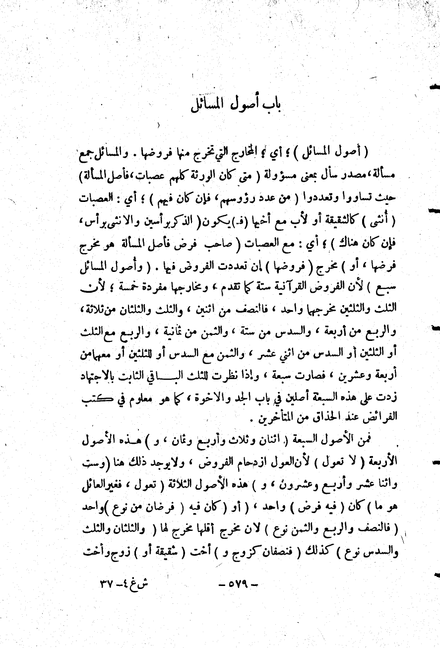 (أُصُولُ الْمَسَائِلِ) ؛ أَيْ؛ الْمَخَارِجِ الَّتِي تَخْرُجُ مِنْهَا فُرُوضُهَا.