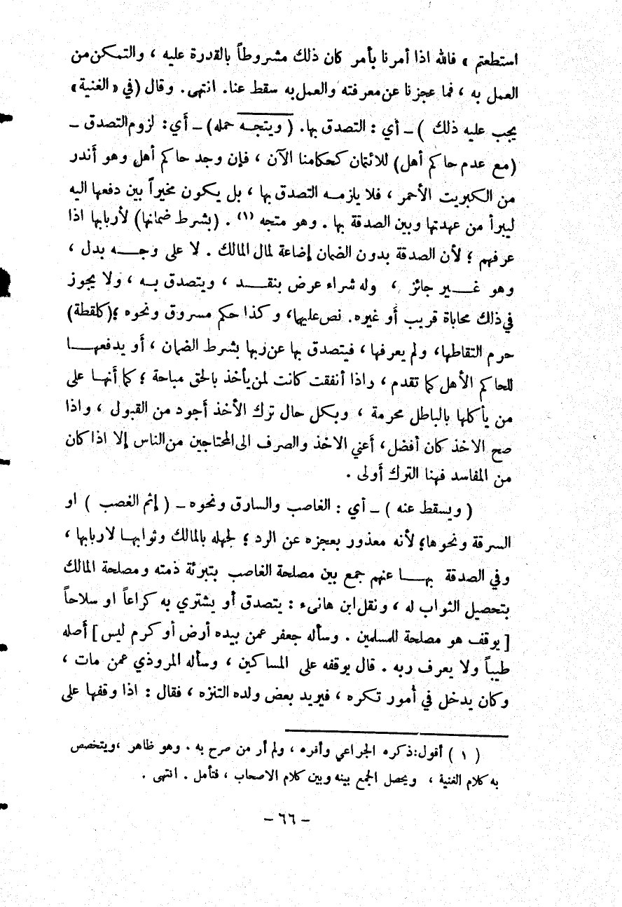 وَقَالَ (فِي " الْغُنْيَةِ " يَجِبُ عَلَيْهِ ذَلِكَ) - أَيْ: التَّصَدُّقُ بِهَا.