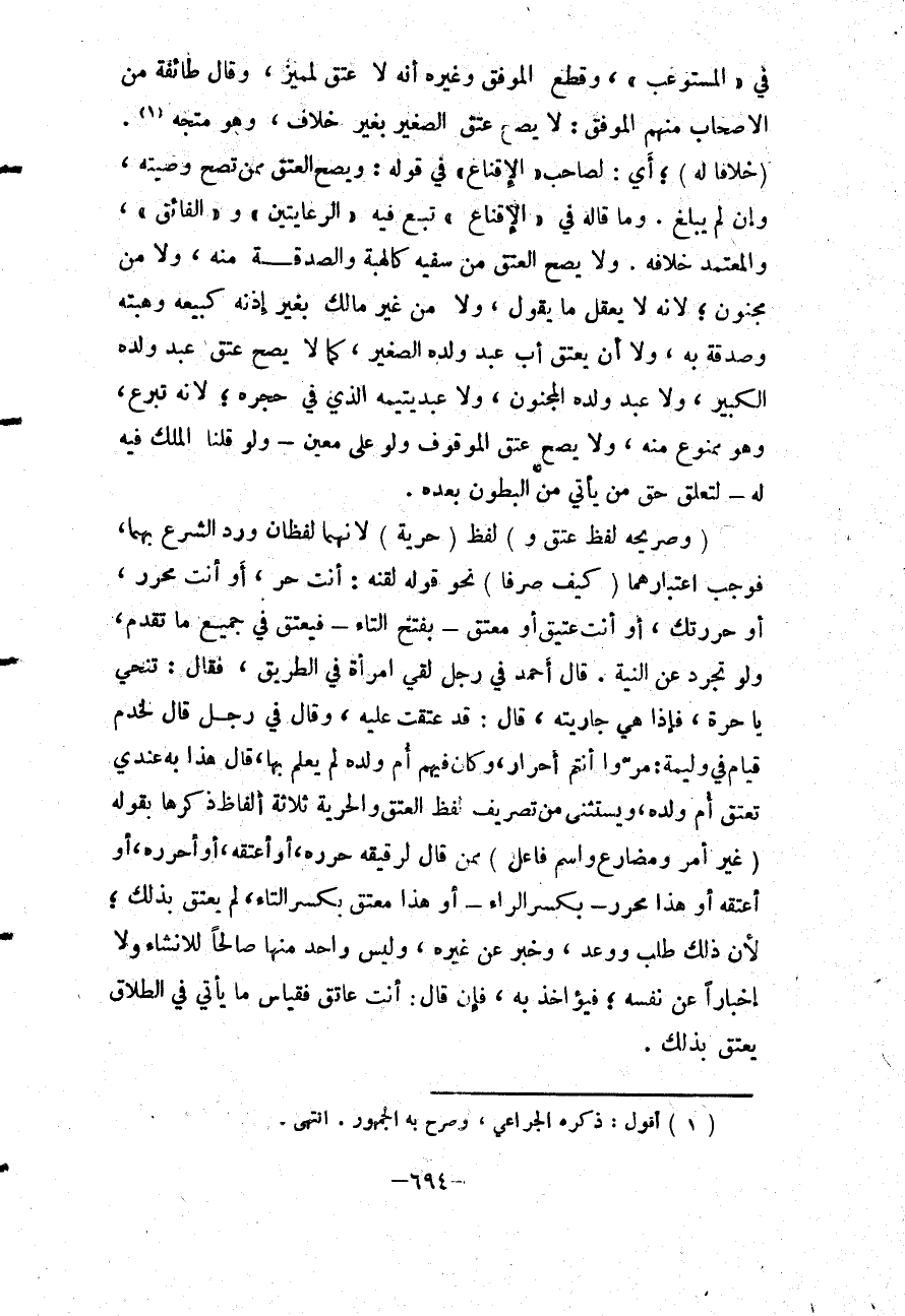 فِي " الْمُسْتَوْعِبِ "، وَقَطَعَ الْمُوَفَّقُ وَغَيْرُهُ أَنَّهُ لَا عِتْقَ لِمُمَيِّزٍ، وَقَالَ طَائِفَةٌ مِنْ الْأَصْحَابِ مِنْهُمْ الْمُوَفَّقُ: لَا يَصِحُّ عِتْقُ الصَّغِيرِ بِغَيْرِ خِلَافٍ، وَهُوَ مُتَّجِهٌ: