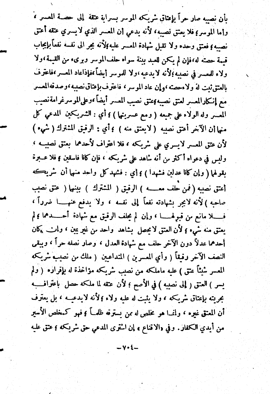 بِأَنَّ نَصِيبَهُ صَارَ حُرًّا بِإِعْتَاقِ شَرِيكِهِ الْمُوسِرِ بِسِرَايَةِ عِتْقِهِ إلَى حِصَّةِ الْمُعْسِرِ، وَأَمَّا الْمُوسِرُ؛ فَلَا يَعْتِقُ نَصِيبَهُ، لِأَنَّهُ يَدَّعِي أَنَّ الْمُعْسِرَ الَّذِي لَا يَسْرِي عِتْقُهُ أَعْتَقَ نَصِيبَهُ؛ فَعَتَقَ وَحْدَهُ وَلَا تُقْبَلُ شَهَادَةُ الْمُعْسِرِ عَلَيْهِ؛ لِأَنَّهُ يَجُرُّ إلَى نَفْسِهِ نَفْعًا بِإِيجَابِ قِيمَةِ حِصَّتِهِ لَهُ، فَإِنْ لَمْ يَكُنْ لِلْعَبْدِ بَيِّنَةٌ سِوَاهُ حَلَفَ الْمُوسِرُ وَبَرِئَ مِنْ الْقِيمَةِ، وَلَا وَلَاءَ لِلْمُعْسِرِ فِي نَصِيبِهِ؛ لِأَنَّهُ لَا يَدَّعِيه، وَلَا لِلْمُوسِرِ أَيْضًا، فَإِذَا عَادَ الْمُعْسِرُ، فَاعْتَرَفَ بِالْعِتْقِ ثَبَتَ لَهُ وَلَاءُ حِصَّتِهِ، وَإِنْ عَادَ الْمُوسِرُ، فَاعْتَرَفَ بِإِعْتَاقِ نَصِيبِهِ، وَصَدَّقَهُ الْمُعْسِرُ مَعَ إنْكَارِ الْمُعْسِرِ لِعِتْقِ نَصِيبِهِ؛ عَتَقَ نَصِيبُ الْمُعْسِرِ أَيْضًا، وَعَلَى الْمُوسِرِ غَرَامَةُ نَصِيبِ الْمُعْسِرِ وَلَهُ الْوَلَاءُ عَلَى جَمِيعِهِ (وَمَعَ عُسْرِيَّتِهِمَا) ؛ أَيْ: الشَّرِيكَيْنِ الْمُدَّعِي كُلٌّ مِنْهُمَا أَنَّ الْآخَرَ أَعْتَقَ نَصِيبَهُ (لَا يَعْتِقُ مِنْهُ) ؛ أَيْ: الرَّقِيقِ الْمُشْتَرَكِ (شَيْءٌ) لِأَنَّ عِتْقَ الْمُعْسِرِ لَا يَسْرِي عَلَى شَرِيكِهِ، فَلَا اعْتِرَافَ لِأَحَدِهِمَا بِعِتْقِ نَصِيبِهِ، وَلَيْسَ فِي دَعْوَاهُ أَكْثَرُ مِنْ أَنَّهُ شَاهِدٌ عَلَى شَرِيكِهِ، فَإِنْ كَانَا فَاسِقَيْنِ؛ فَلَا عِبْرَةَ بِقَوْلِهِمَا.
