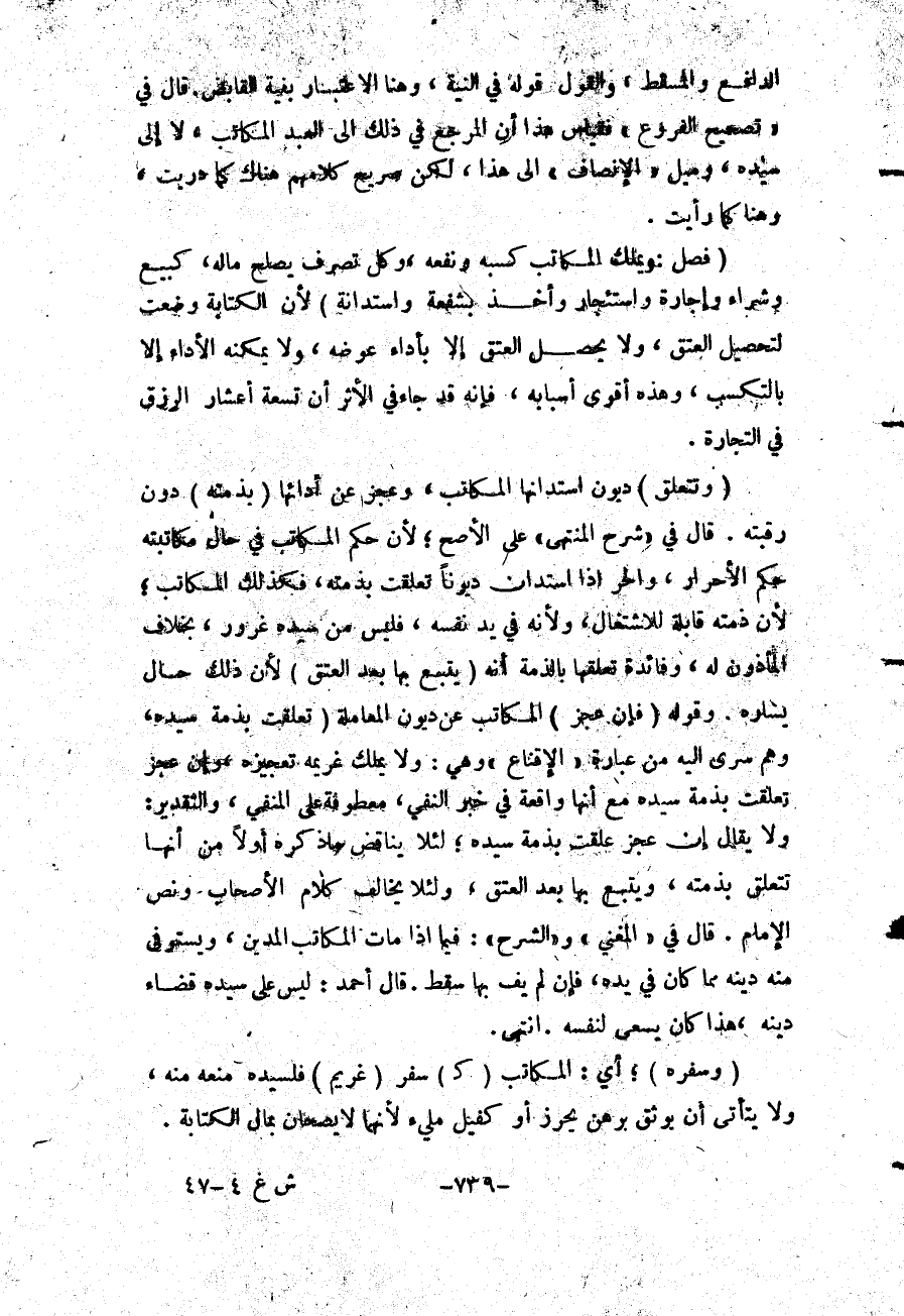 (وَتَتَعَلَّقُ) دُيُونٌ اسْتَدَانَهَا الْمُكَاتَبُ، وَعَجَزَ عَنْ أَدَائِهَا (بِذِمَّتِهِ) دُونَ رَقَبَتِهِ.