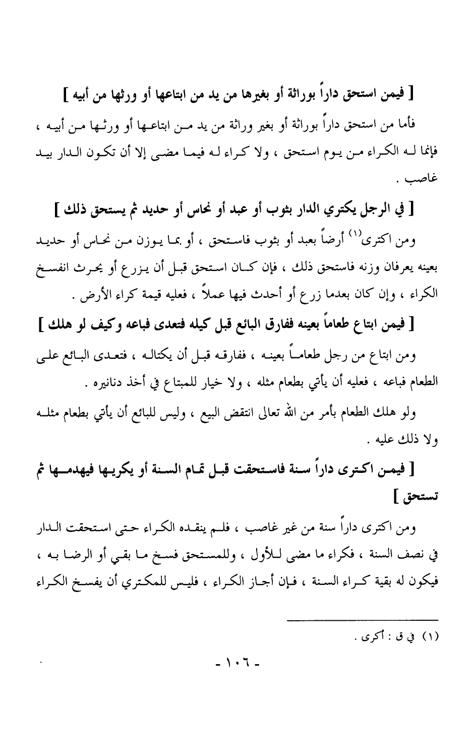 3570 - فأما من استحق داراً بوراثة أو بغير وراثة من يد من ابتاعها أو ورثها من أبيه، فإنما له الكراء من يوم استحق، ولا كراء له فيما مضى إلا أن تكون الدار بيد غاصب. (¬1)