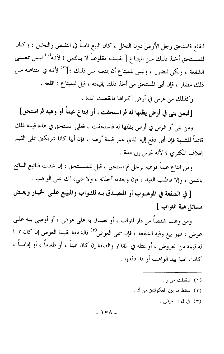 3655 - ومن وهب شقصاً من دار لثواب، أو تصدق به على عوض، أو أوصى به على عوض، فهو بيع وفيه الشفعة، فإن سمى العوض فالشفعة بقيمة العوض إن كان مما له قيمة من العروض، أو بمثله في المقدار والصفة إن كان عيناً، أو طعاماً، أو إداماً، كانت الهبة بيد الواهب أو قد دفعها. (¬1)