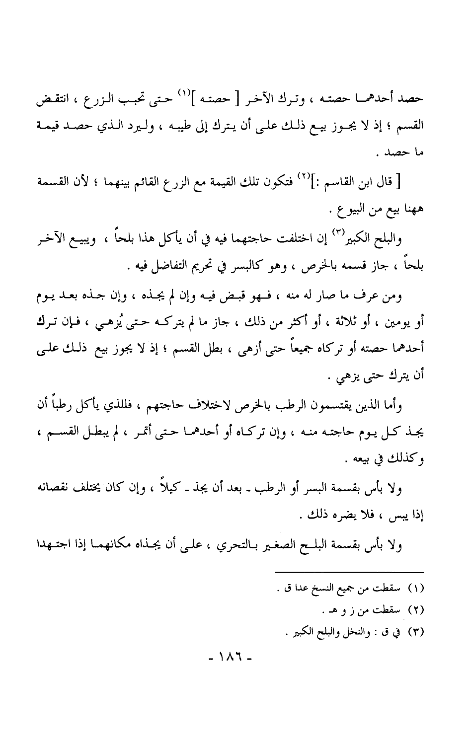3698 - وأما الذين يقتسمون الرطب بالخرص لاختلاف حاجتهم، فللذي يأكل رطباً أن يجذ كل يوم حاجته منه، وإن تركاه أو أحدهما حتى أتمر، لم يبطل القسم، وكذلك في بيعه.
