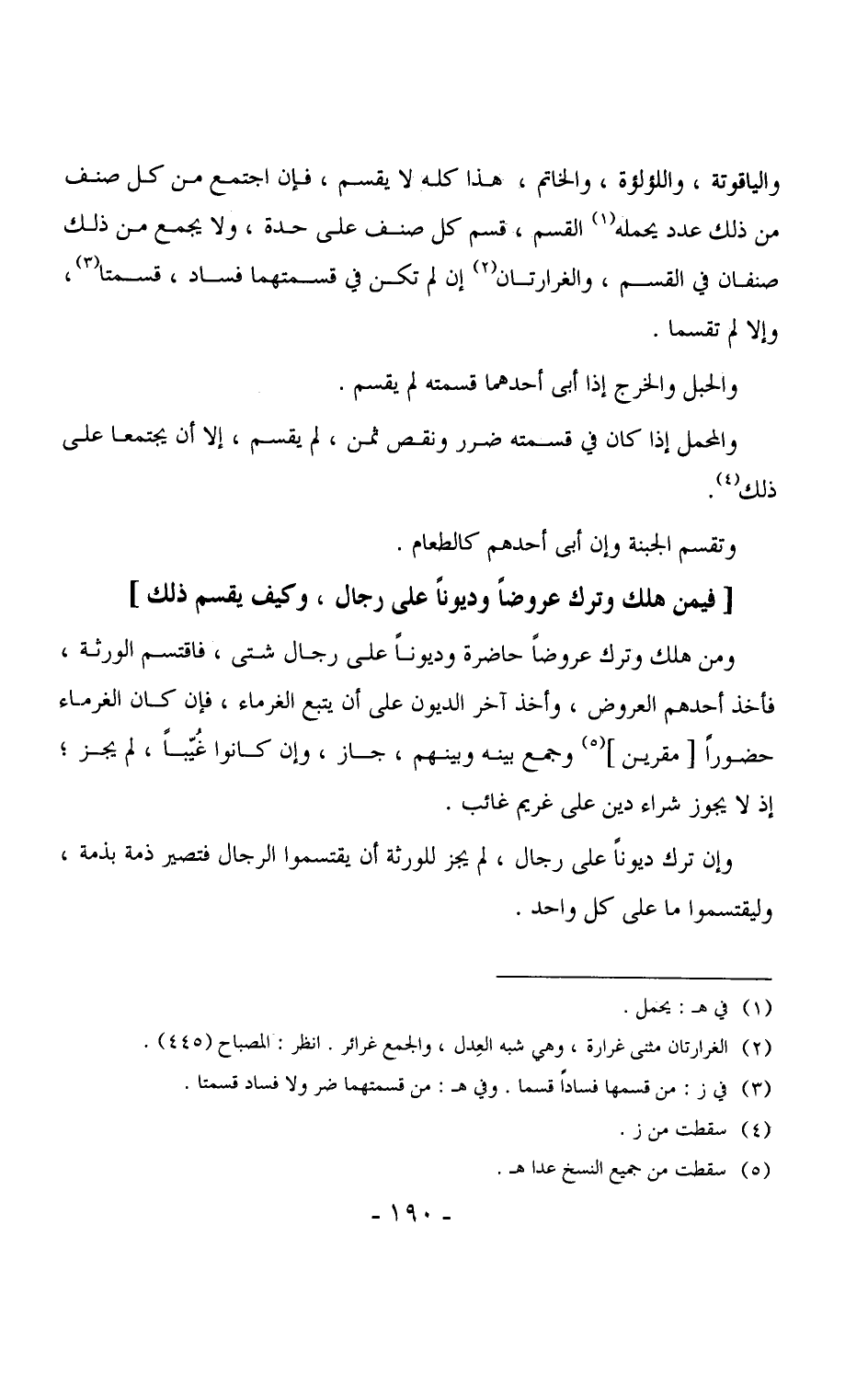 3702 - ومن هلك وترك عروضاً حاضرة وديوناً على رجال شتى، فاقتسم الورثة، فأخذ أحدهم العروض، وأخذ آخر الديون على أن يتبع الغرماء، فإن كان الغرماء حضوراً [مقرين] وجمع بينه وبينهم، جاز، وإن كانوا غُيّباً، لم يجز، إذ لا يجوز شراء دين على غريم غائب.