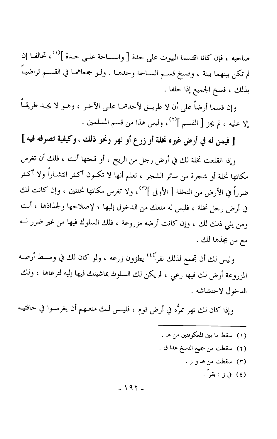 وليس لك أن تجمع لذلك نفراً يطؤون زرعه، ولو كان لك في وسط أرضه المزروعة أرض لك فيها رعي، لم يكن لك السلوك بماشيتك فيها إليه لترعاها، ولك الدخول لاحتشاشه.