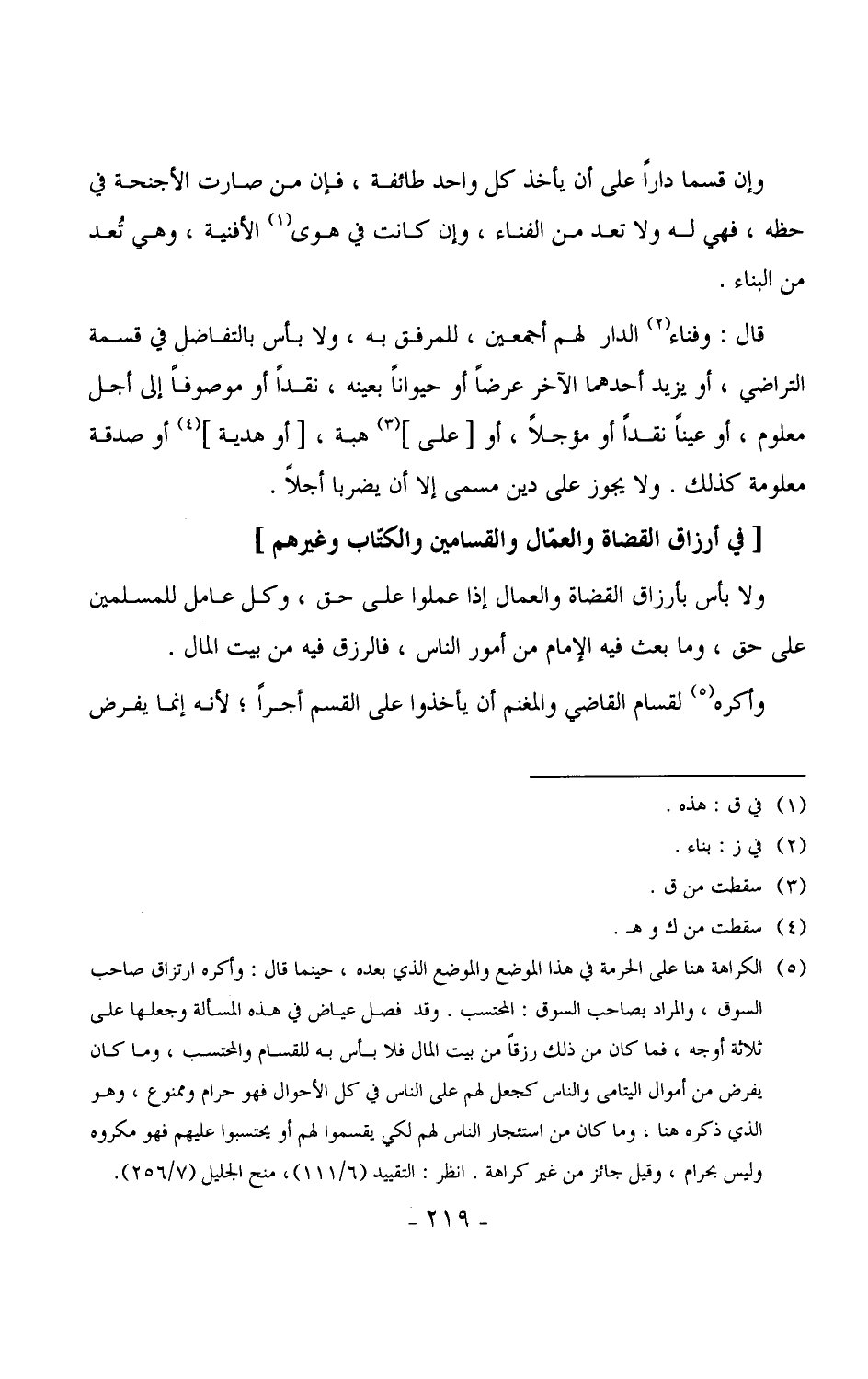 وأكره لقسام القاضي والمغنم أن يأخذوا على القسم أجراً، لأنه إنما يفرض