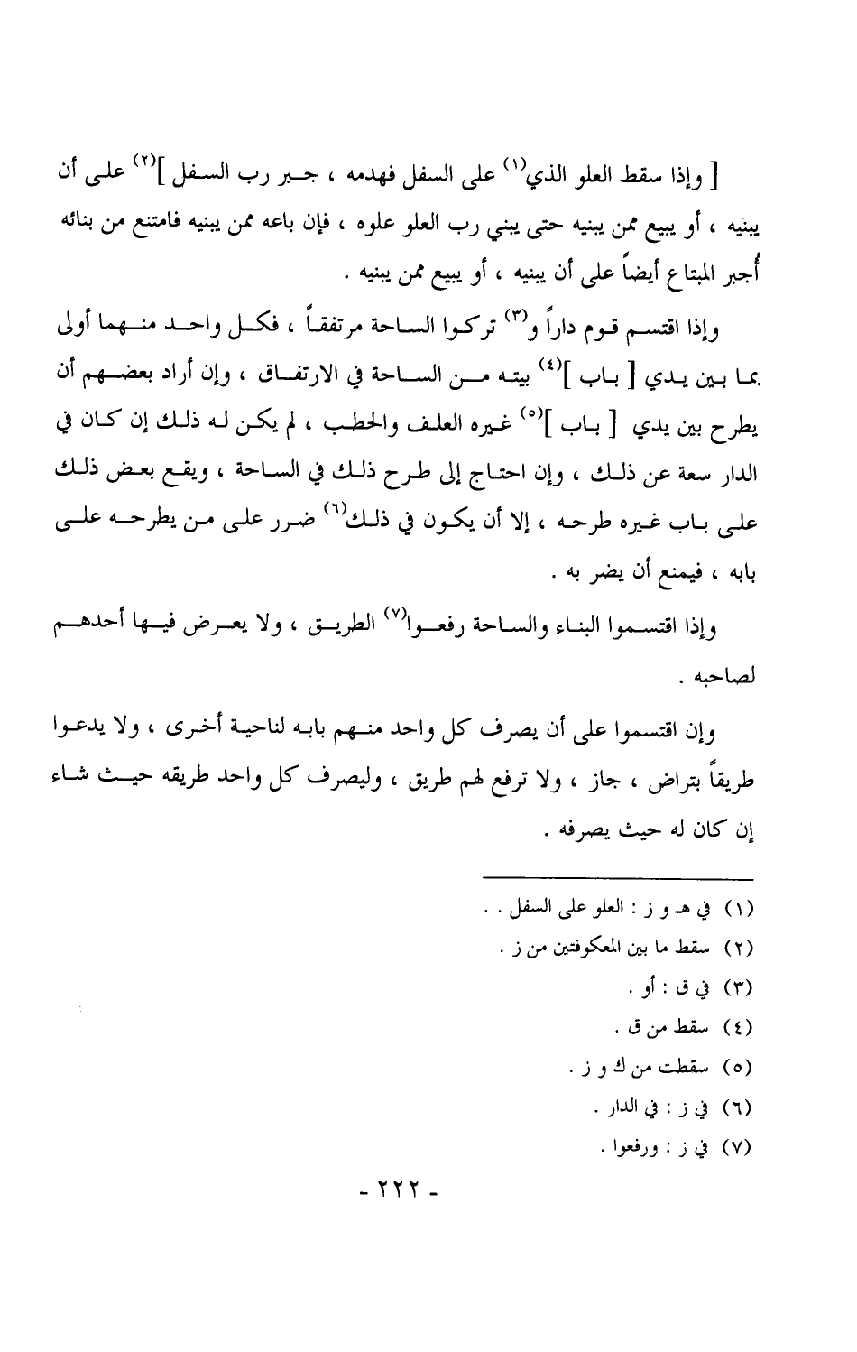 وإذا اقتسموا البناء والساحة رفعوا الطريق، ولا يعرض فيها أحدهم لصاحبه.