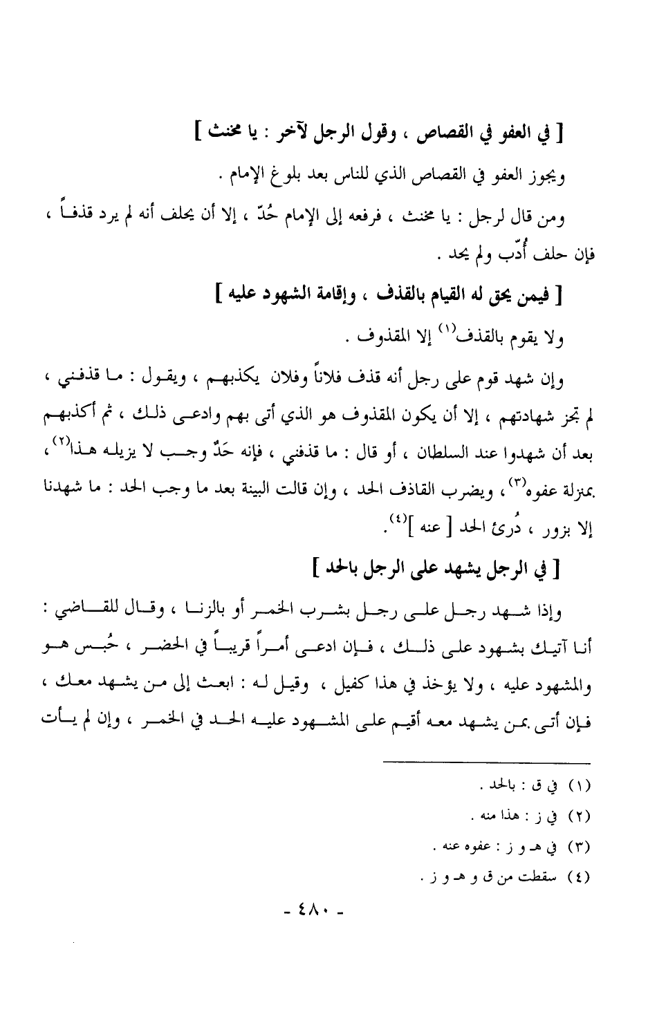 وإن شهد قوم على رجل أنه قذف فلاناً وفلان يكذبهم، ويقول: ما قذفني، لم تجز شهادتهم، إلا أن يكون المقذوف هو الذي أتى بهم وادعى ذلك، ثم أكذبهم بعد أن شهدوا عند السلطان، أو قال: ما قذفني، فإنه حَدّ وجب لا يزيله هذا، بمنزلة عفوه، ويضرب القاذف الحد، وإن قالت البينة بعد ما وجب الحد: ما شهدنا إلا بزور، دُرئ الحد [عنه] . (¬1)