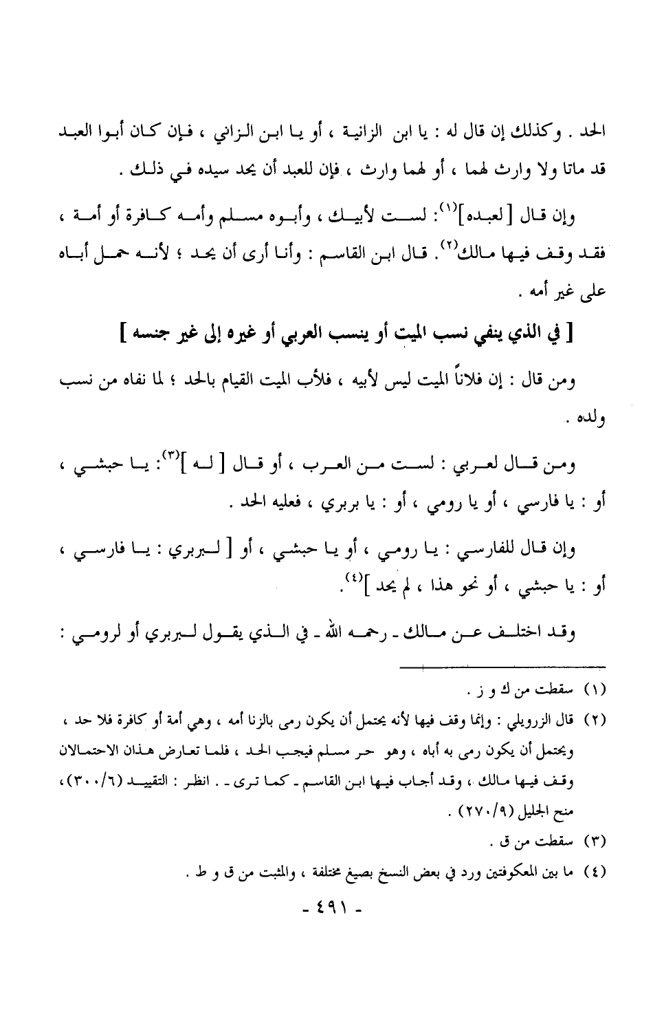 وقد اختلف عن مالك - رحمه الله - في الذي يقول لبربري أو لرومي: