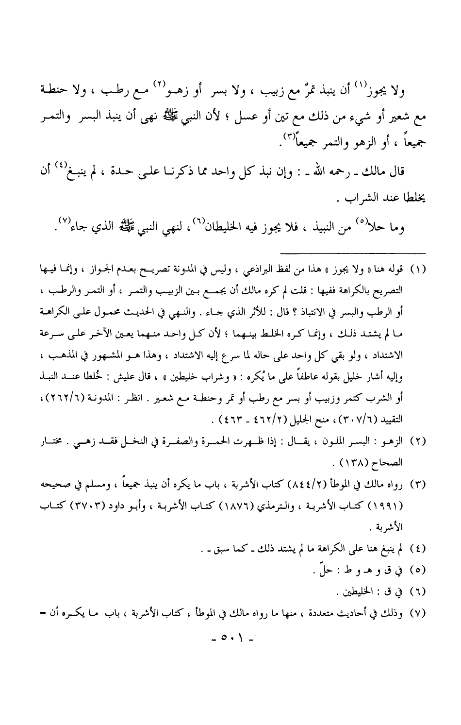 قال مالك - رحمه الله -: وإن نبذ كل واحد مما ذكرنا على حدة، لم ينبغ أن يخلطا عند الشراب.