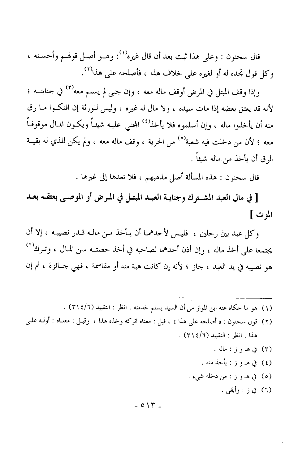 قال سحنون: هذه المسألة أصل مذهبهم، فلا تعدها إلى غيرها.