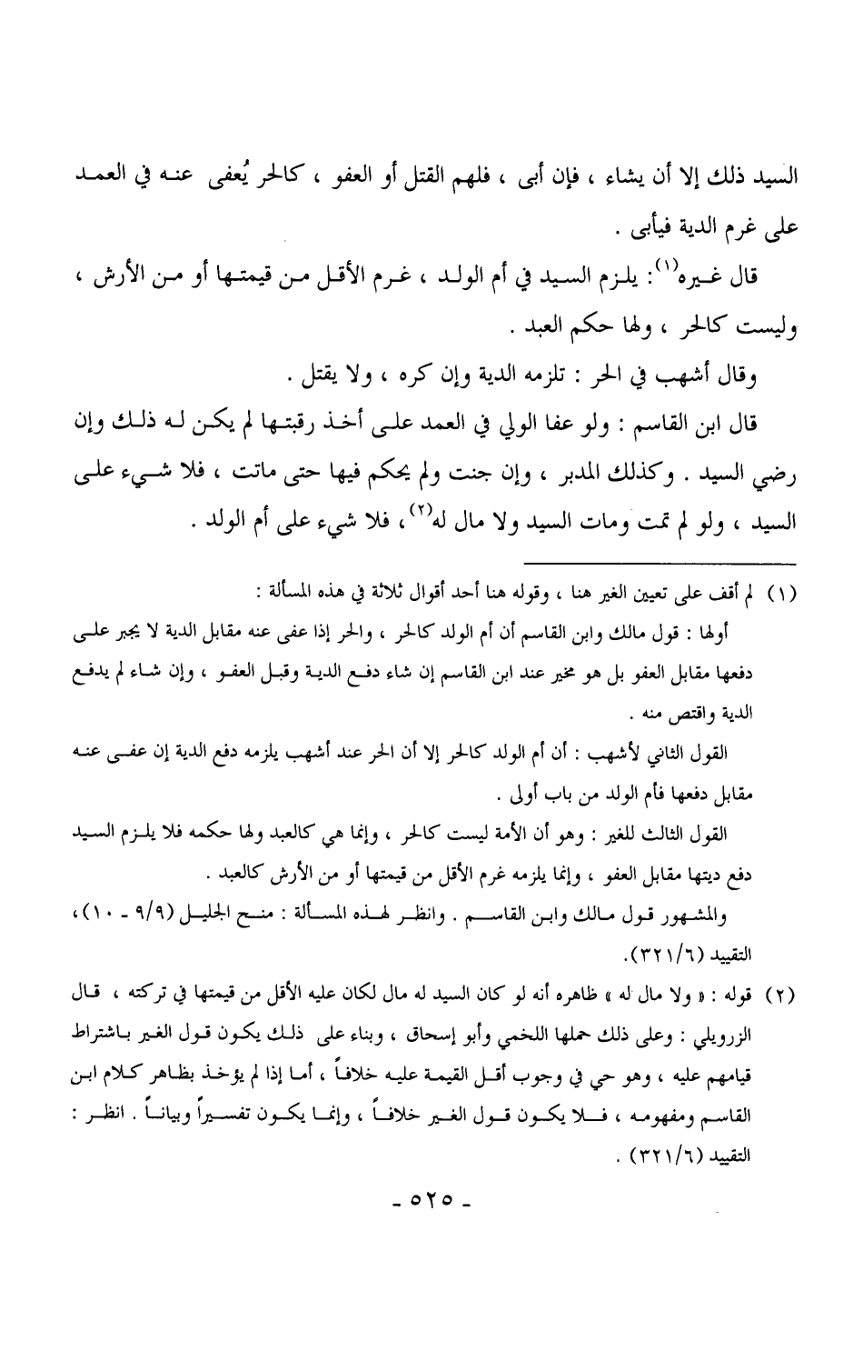 قال ابن القاسم: ولو عفا الولي في العمد على أخذ رقبتها لم يكن له ذلك وإن رضي السيد. وكذلك المدبر، وإن جنت ولم يحكم فيها حتى ماتت، فلا شيء على السيد، ولو تمت ومات السيد ولا مال له، فلا شيء على أم الولد. (¬1)