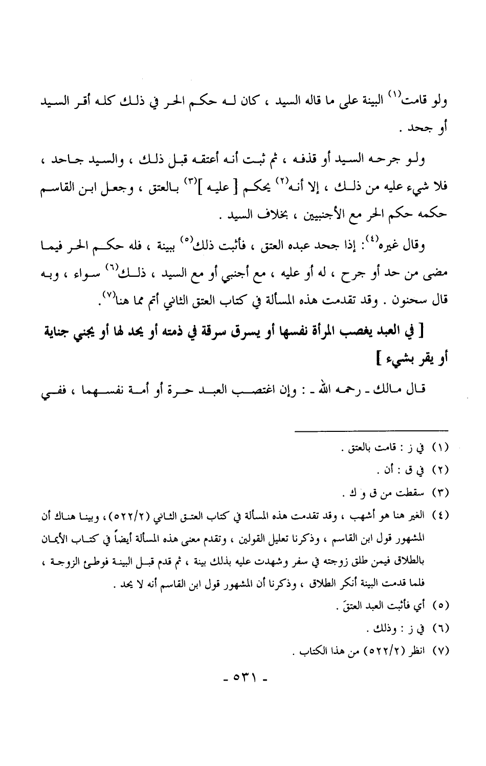 وقال غيره: إذا جحد عبده العتق، فأثبت ذلك ببينة، فله حكم الحر فيما مضى من حد أو جرح، له أو عليه، مع أجنبي أو مع السيد، ذلك سواء، وبه قال سحنون. وقد تقدمت هذه المسألة في كتاب العتق الثاني أتم مما هنا.