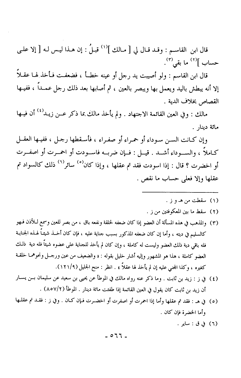 مالك: وفي العين القائمة الاجتهاد. ولم يأخذ مالك بما ذكر عن زيد أن فيها مائة دينار.