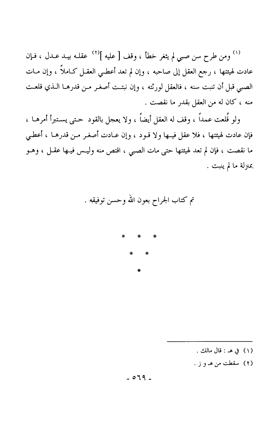 ومن طرح سن صبي لم يثغر خطأ، وقف [عليه] عقله بيد عدل، فإن عادت لهيئتها، رجع العقل إلى صاحبه، وإن لم تعد أعطي العقل كاملاً، وإن مات الصبي قبل أن تنبت سنه، فالعقل لورثته، وإن نبتت أصغر من قدرها الذي قلعت منه، كان له من العقل بقدر ما نقصت.
