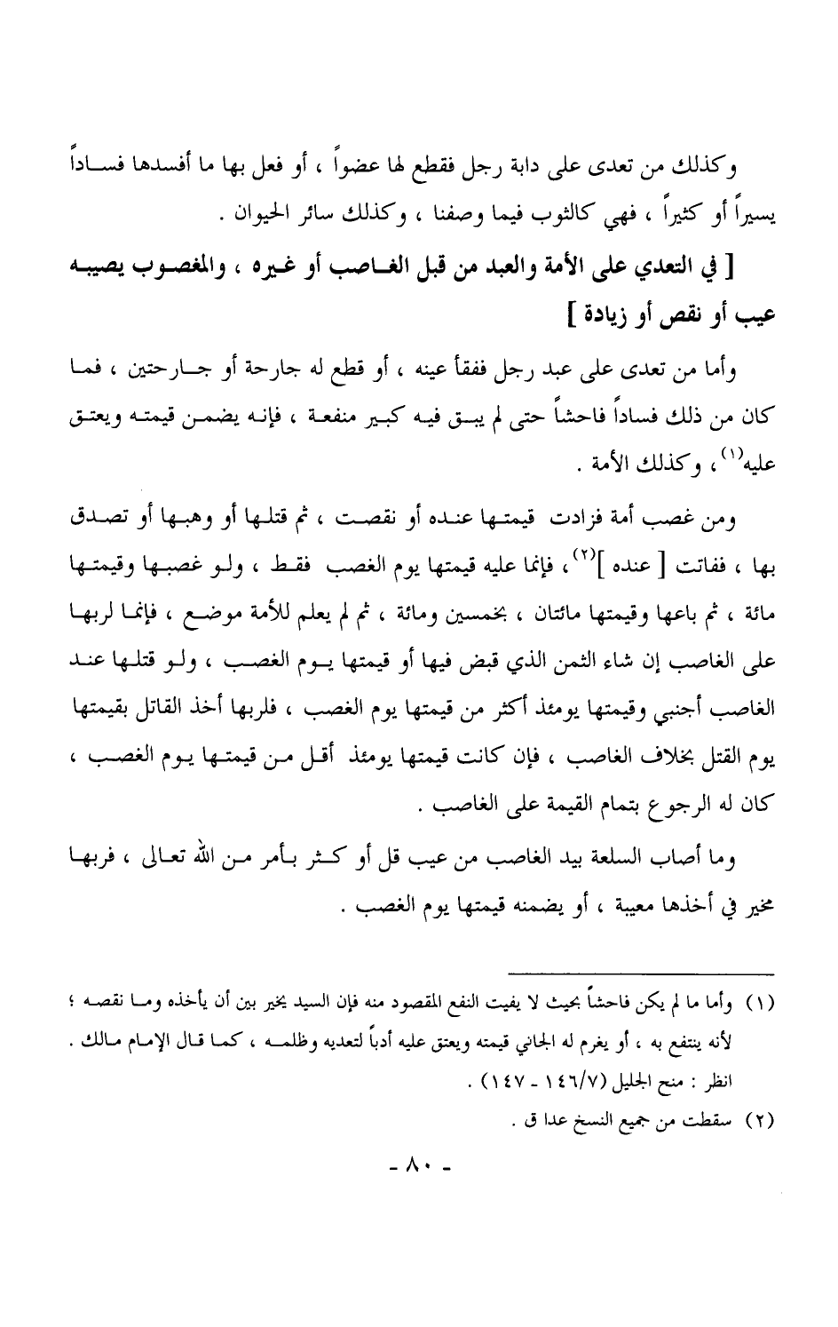 3532 - وأما من تعدى على عبد رجل ففقأ عينه، أو قطع له جارحة أو جارحتين، فما كان من ذلك فساداً فاحشاً حتى لم يبق فيه كبير منفعة، فإنه يضمن قيمته ويعتق عليه، وكذلك الأمة.