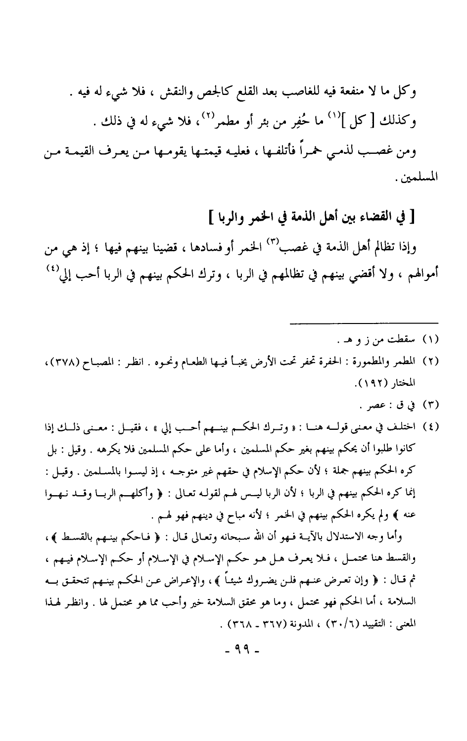 3561 - وإذا تظالم أهل الذمة في غصب الخمر أو فسادها، قضينا بينهم فيها، إذ هي من أموالهم، ولا أقضي بينهم في تظالمهم في الربا، وترك الحكم بينهم في الربا أحب إلي
