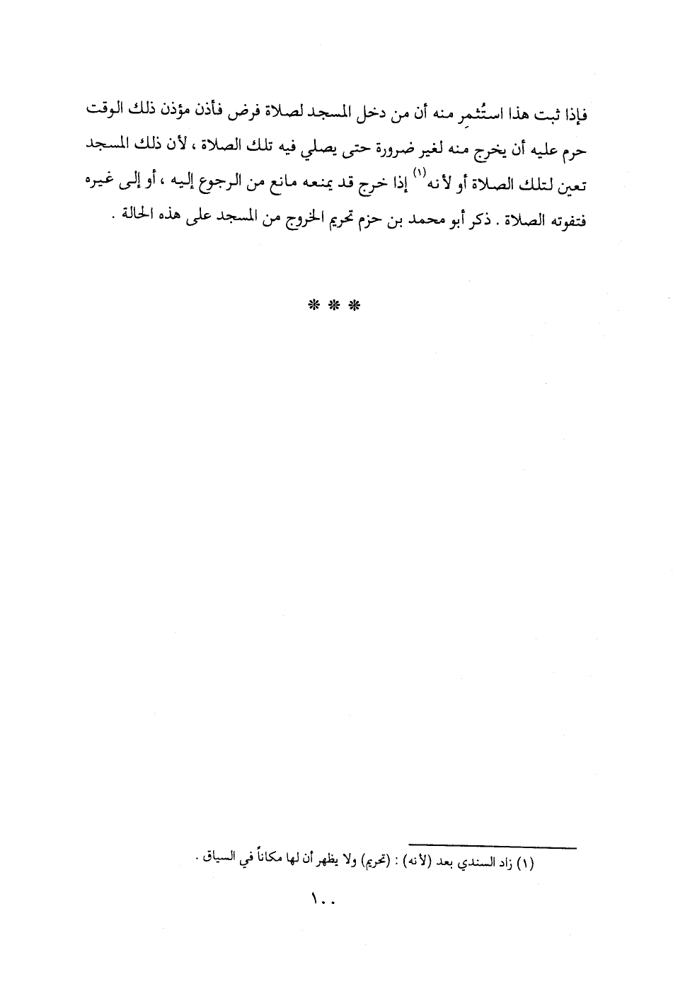 فإذا ثبت هذا استُثمِر منه أن من دخل المسجد لصلاة فرض فأذن مؤذن ذلك الوقت حرم عليه أن يخرج منه لغير ضرورة حتى يصلي فيه تلك الصلاة، لأن ذلك المسجد تعين لتلك الصلاة أو لأنه (¬1) إذا خرج قد يمنعه مانع من الرجوع إليه، أو إلى غيره فتفوته الصلاة. ذكر أبو محمد بن حزم تحريم الخروج من المسجد على هذه الحالة.