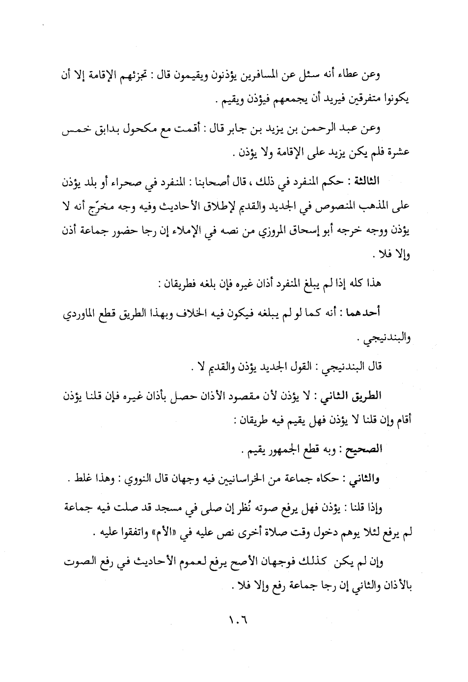 الثالثة: حكم المنفرد في ذلك، قال أصحابنا: المنفرد في صحراء أو بلد يؤذن على المذهب المنصوص في الجديد والقديم لإطلاق الأحاديث وفيه وجه مخرّج أنه لا يؤذن ووجه خرجه أبو إسحاق المروزي من نصه في الإملاء إن رجا حضور جماعة أذن وإلا فلا.