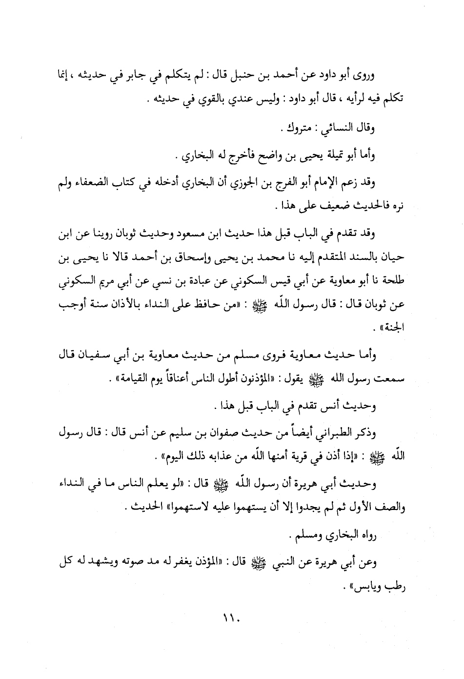 وقد تقدم في الباب قبل هذا حديث ابن مسعود وحديث ثوبان روينا عن ابن حيان بالسند المتقدم إليه نا محمد بن يحيى وإسحاق بن أحمد قالا نا يحيى بن طلحة نا أبو معاوية عن أبي قيس السكوني عن عبادة بن نسي عن أبي مريم السكوني عن ثوبان قال: قال رسول الله - صلى الله عليه وسلم -: "من حافظ على النداء بالأذان سنة أوجب الجنة".