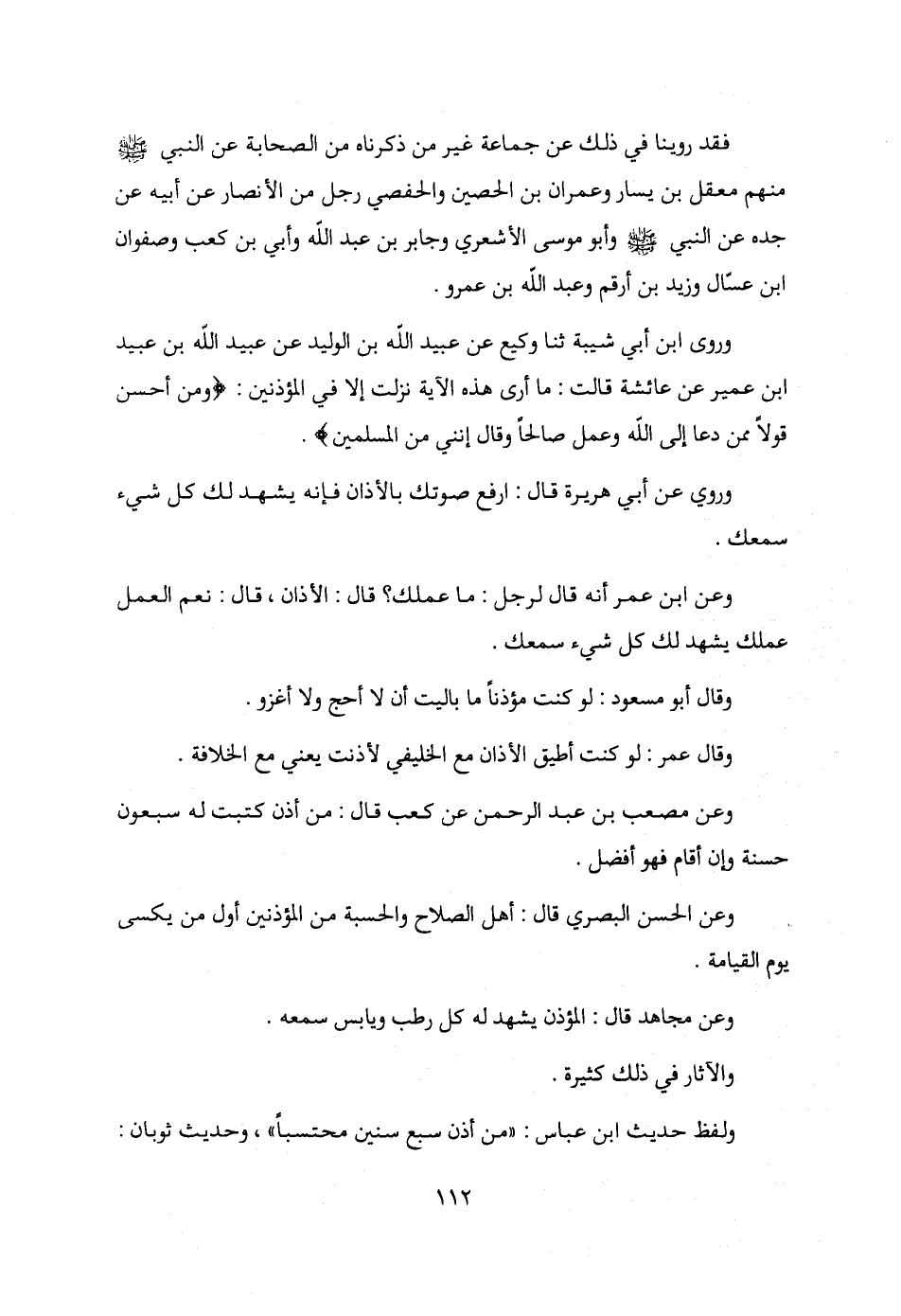 وعن ابن عمر أنه قال لرجل: ما عملك؟ قال: الأذان، قال: نعم العمل عملك يشهد لك كل شيء سمعك.