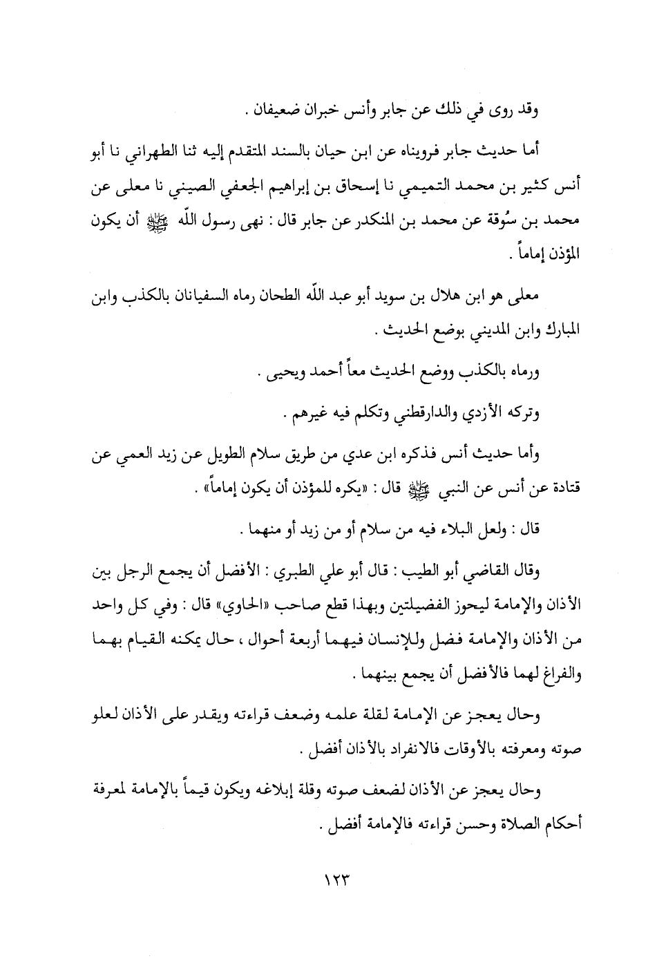 أما حديث جابر فرويناه عن ابن حيان بالسند المتقدم إليه ثنا الطهراني نا أبو أنس كثير بن محمد التميمي نا إسحاق بن إبراهيم الجعفي الصيني نا معلى عن محمد بن سُوقة عن محمد بن المنكدر عن جابر قال: نهى رسول الله - صلى الله عليه وسلم - أن يكون المؤذن إمامًا.