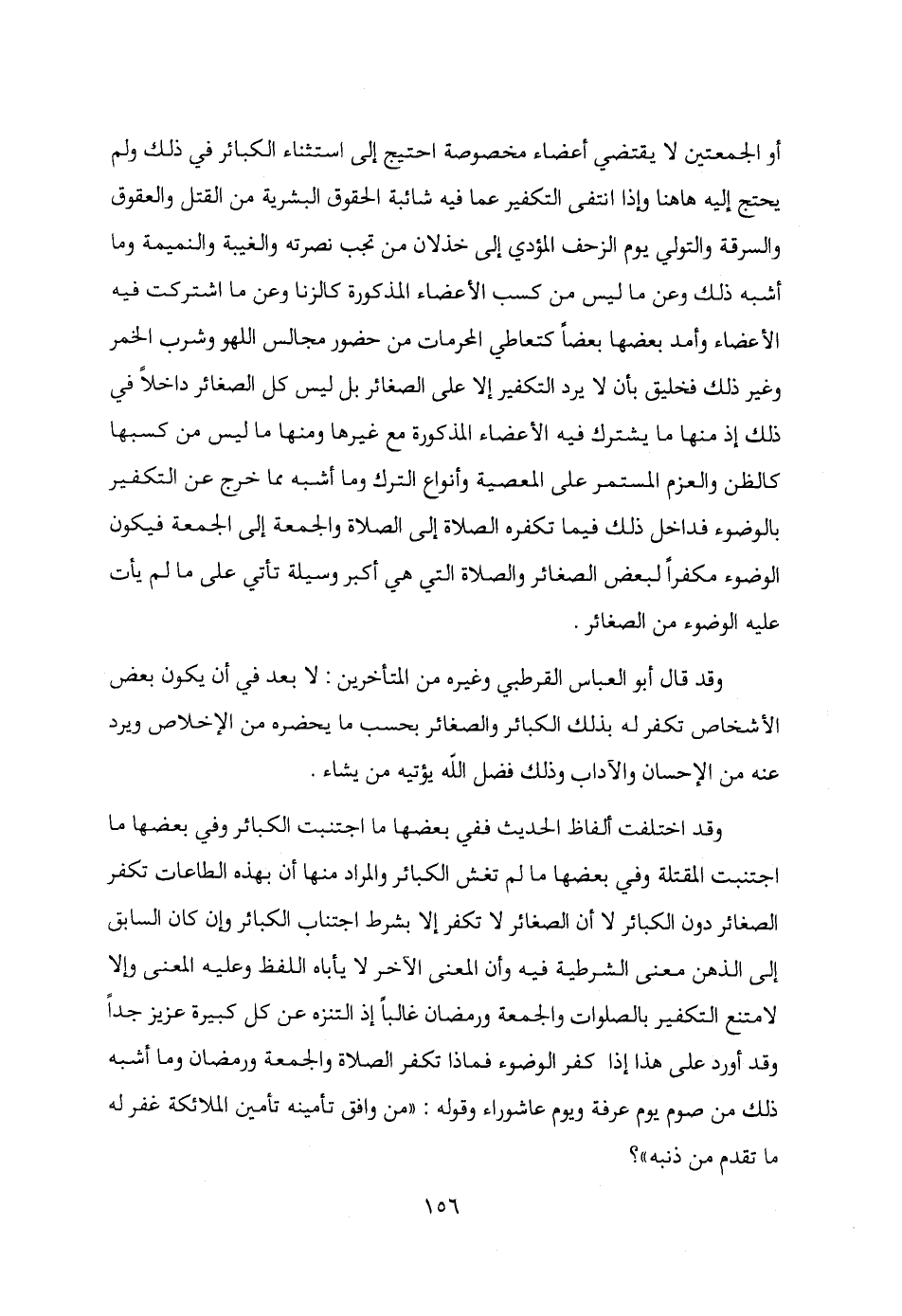 أو الجمعتين لا يقتضي أعضاء مخصوصة احتيج إلى استثناء الكبائر في ذلك ولم يحتج إليه هاهنا وإذا انتفى التكفير عما فيه شائبة الحقوق البشرية من القتل والعقوق والسرقة والتولي يوم الزحف المؤدي إلى خذلان من تجب نصرته والغيبة والنميمة وما أشبه ذلك وعن ما ليس من كسب الأعضاء المذكورة كالزنا وعن ما اشتركت فيه الأعضاء وأمد بعضها بعضًا كتعاطي المحرمات من حضور مجالس اللهو وشرب الخمر وغير ذلك فخليق بأن لا يرد التكفير إلا على الصغائر بل ليس كل الصغائر داخلًا في ذلك إذ منها ما يشترك فيه الأعضاء المذكورة مع غيرها ومنها ما ليس من كسبها كالظن والعزم المستمر على المعصية وأنواع الترك وما أشبه مما خرج عن التكفير بالوضوء فداخل ذلك فيما تكفره الصلاة إلى الصلاة والجمعة إلى الجمعة فيكون الوضوء مكفرًا لبعض الصغائر والصلاة التي هي أكبر وسيلة تأتي على ما لم يأت عليه الوضوء من الصغائر.