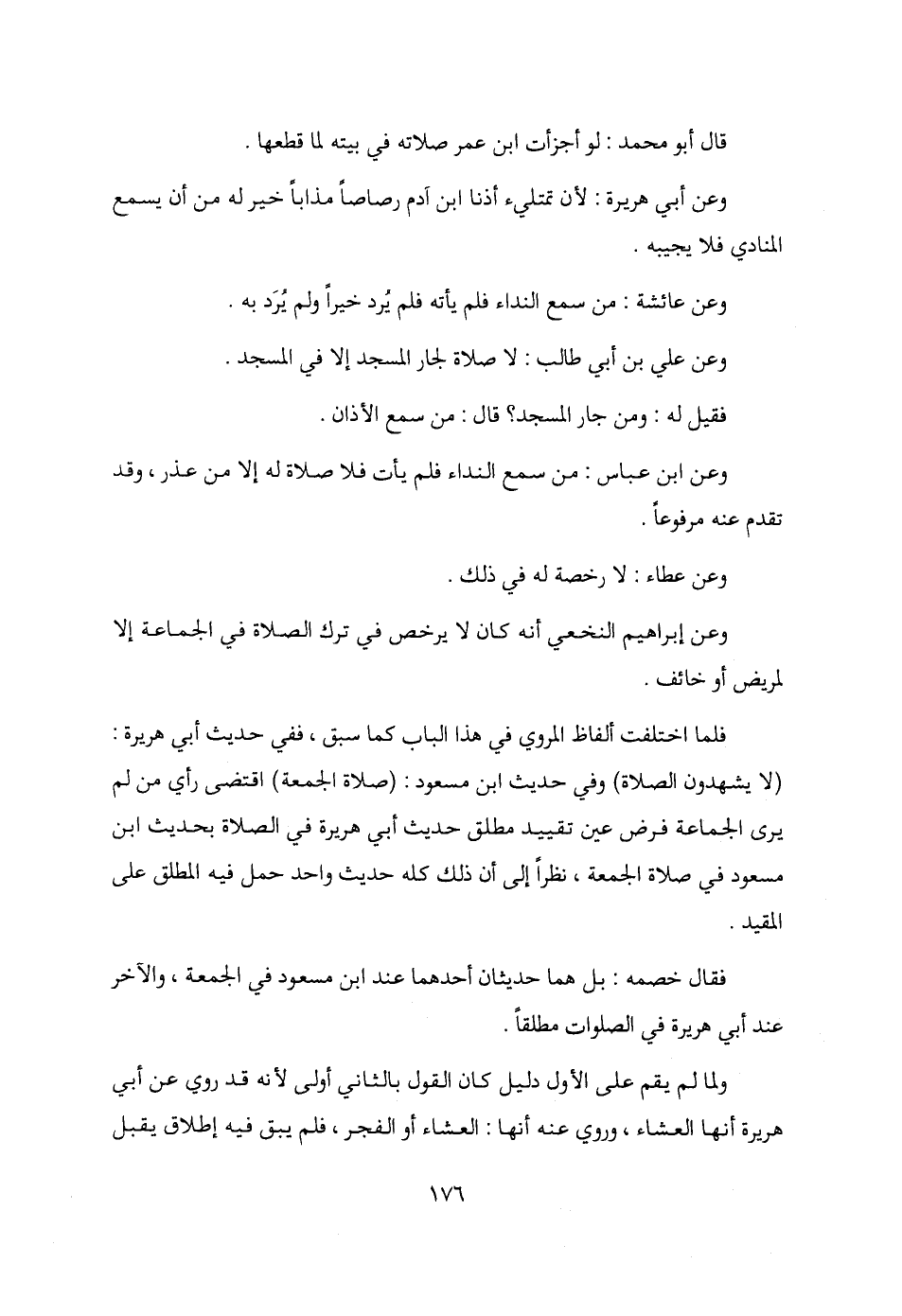 وعن علي بن أبي طالب: لا صلاة لجار المسجد إلا في المسجد.