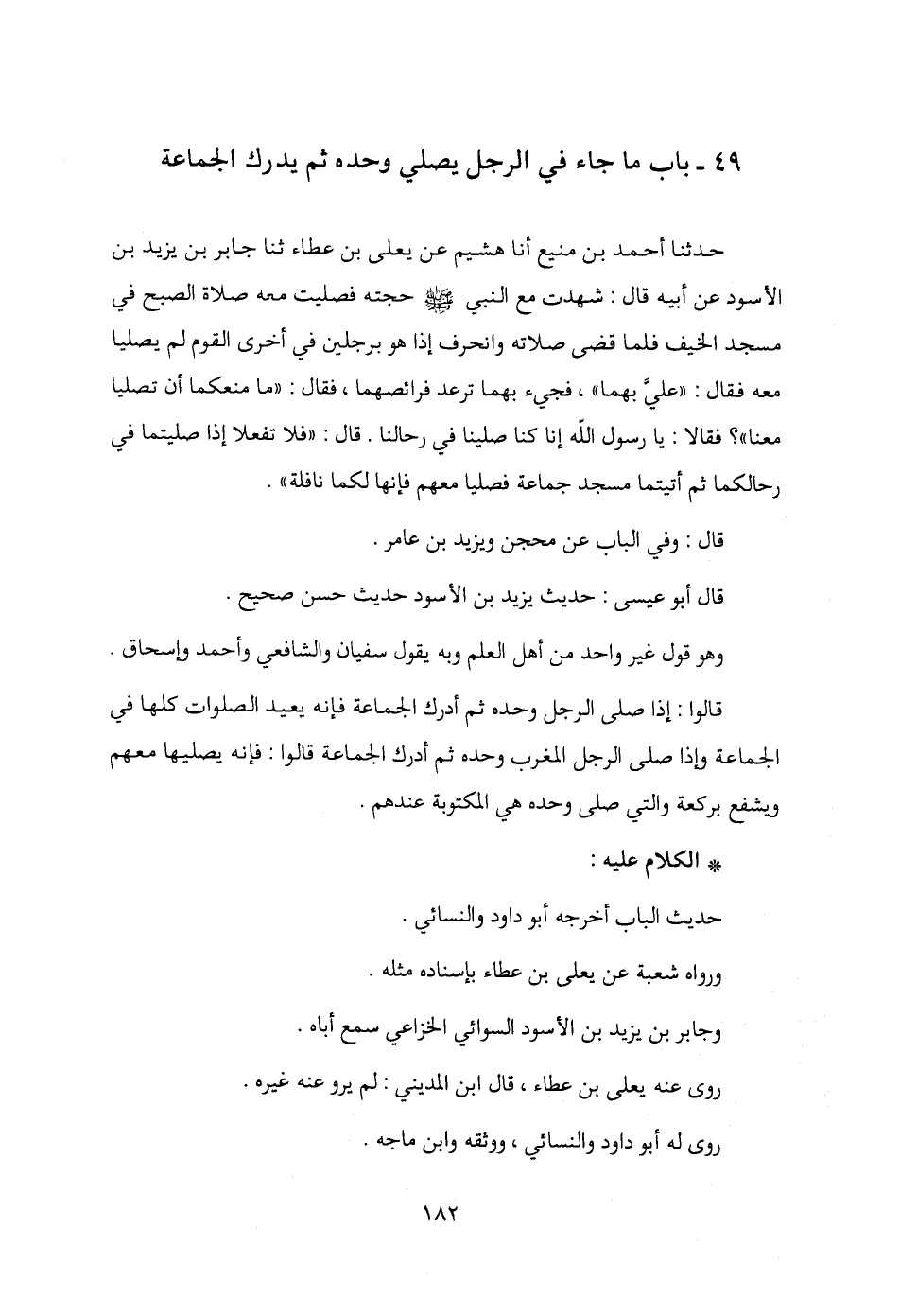 49 - باب ما جاء في الرجل يصلي وحده ثم يدرك الجماعة