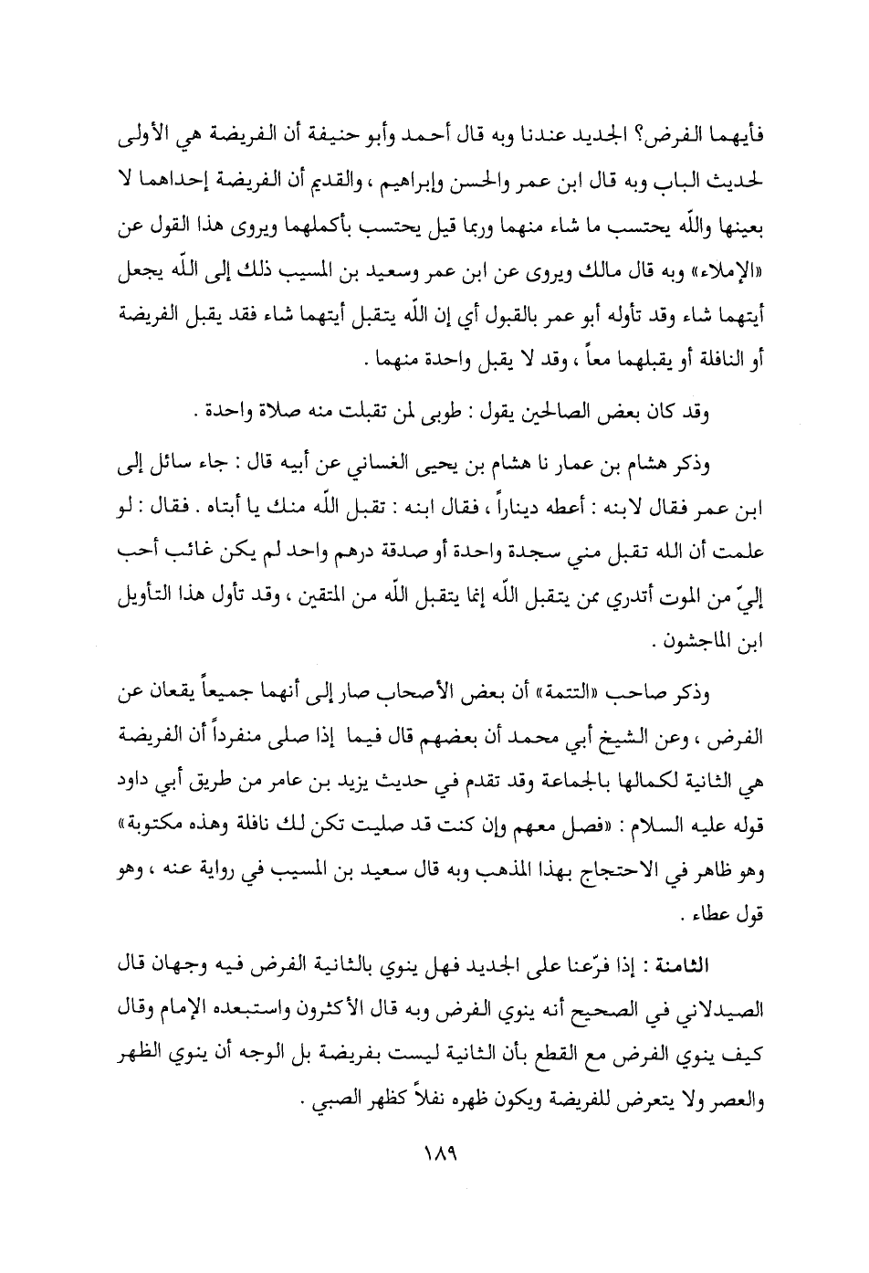 وذكر هشام بن عمار نا هشام بن يحيى الغساني عن أبيه قال: جاء سائل إلى ابن عمر فقال لابنه: أعطه دينارًا، فقال ابنه: تقبل الله منك يا أبتاه. فقال: لو علمت أن الله تقبل مني سجدة واحدة أو صدقة درهم واحد لم يكن غائب أحب إلي من الموت أتدري ممن يتقبل الله إنما يتقبل الله من المتقين، وقد تأول هذا التأويل ابن الماجشون.