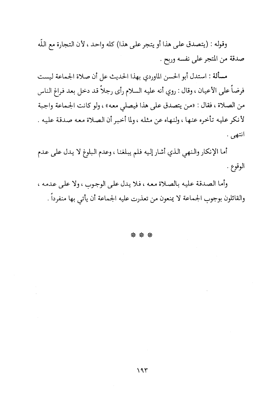 وأما الصدقة عليه بالصلاة معه، فلا يدل على الوجوب، ولا على عدمه، والقائلون بوجوب الجماعة لا يمنعون من تعذرت عليه الجماعة أن يأتي بها منفردًا.