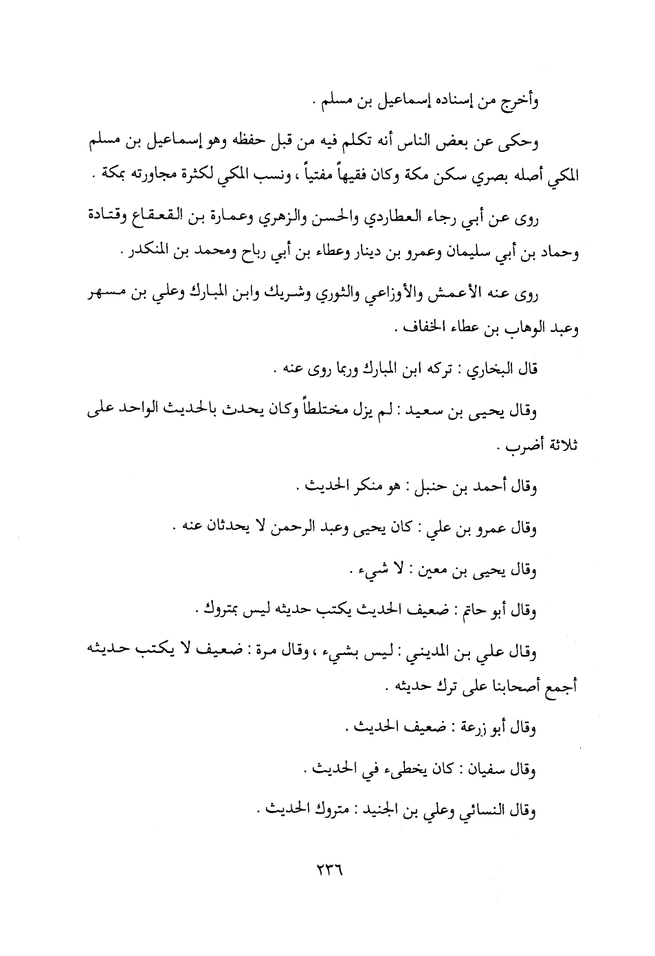 وحكى عن بعض الناس أنه تكلم فيه من قبل حفظه وهو إسماعيل بن مسلم المكي أصله بصري سكن مكة وكان فقيهًا مفتيًا، ونسب المكي لكثرة مجاورته بمكة.