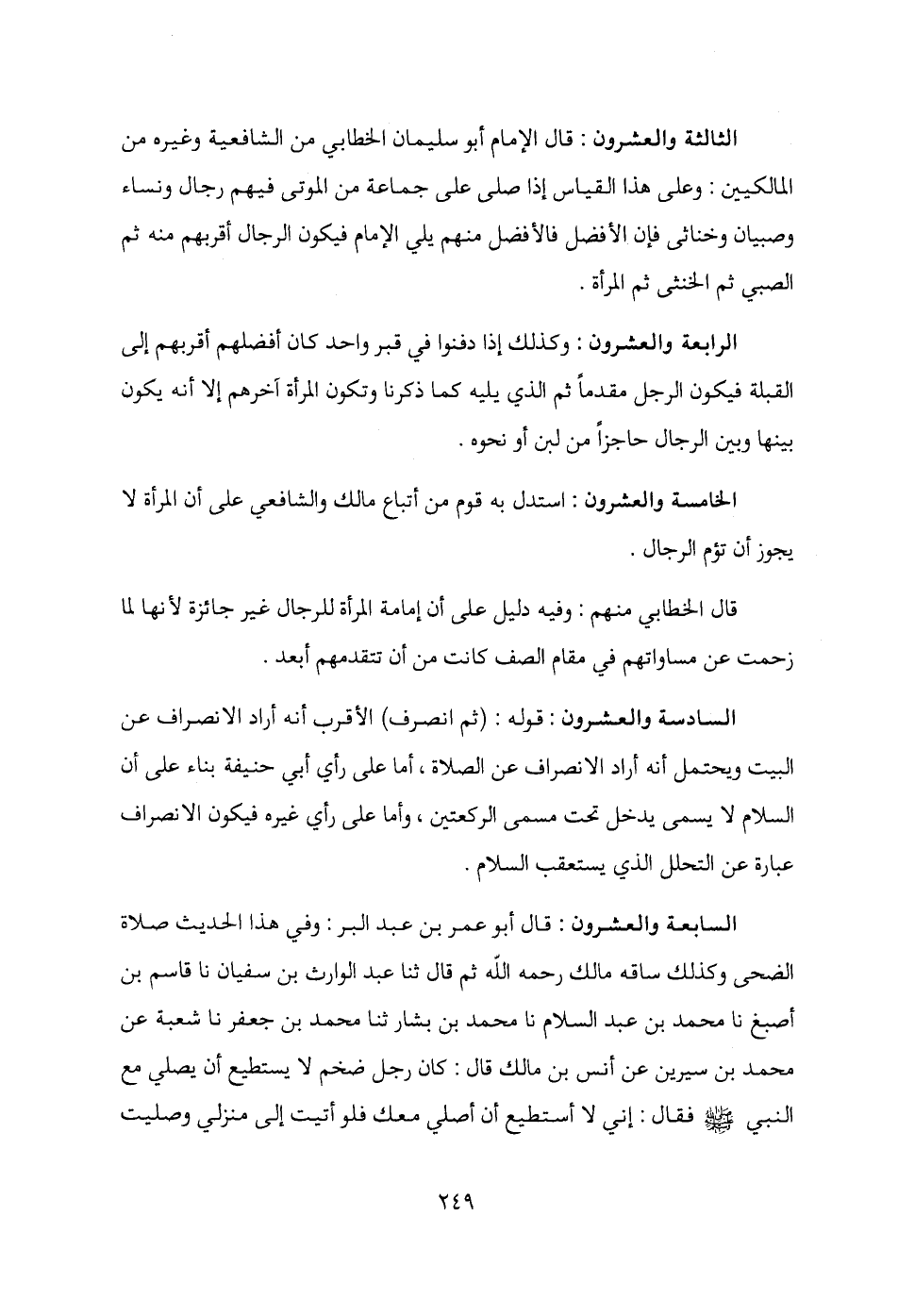 الثالثة والعشرون: قال الإمام أبو سليمان الخطابي من الشافعية وغيره من المالكيين: وعلى هذا القياس إذا صلى على جماعة من الموتى فيهم رجال ونساء وصبيان وخناثى فإن الأفضل فالأفضل منهم يلي الإمام فيكون الرجال أقربهم منه ثم الصبي ثم الخنثى ثم المرأة.