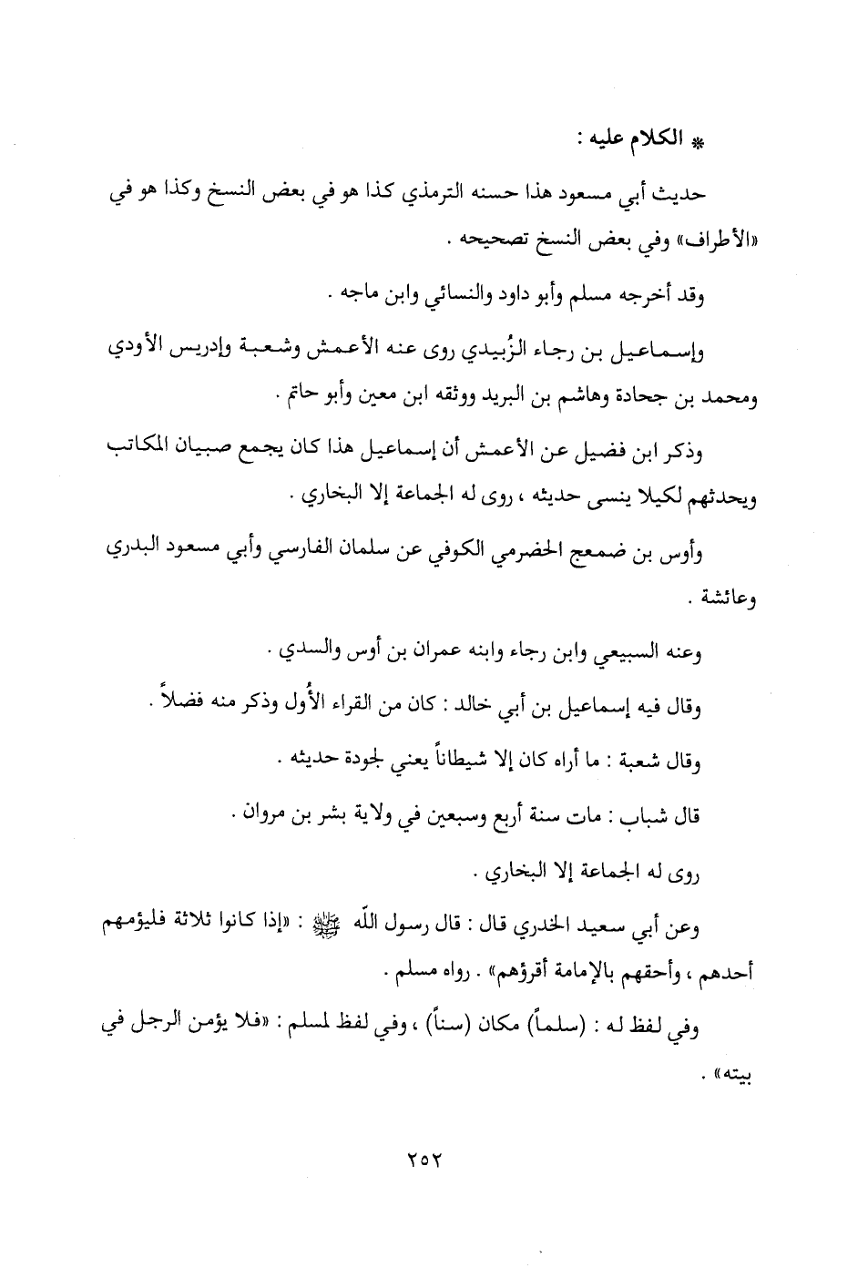 وذكر ابن فضيل عن الأعمش أن إسماعيل هذا كان يجمع صبيان المكاتب ويحدثهم لكيلا ينسى حديثه، روى له الجماعة إلا البخاري.