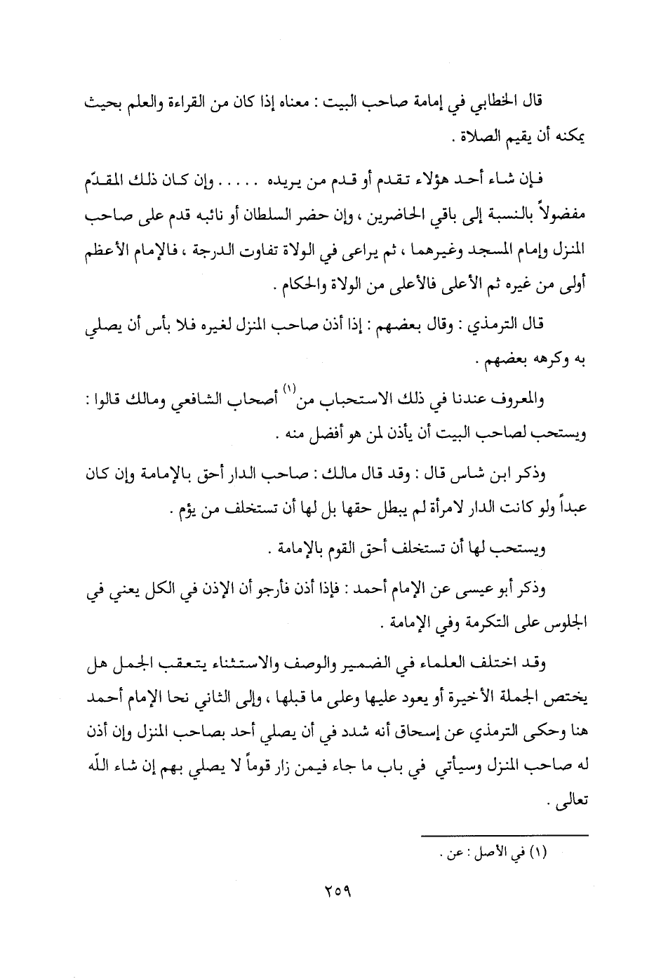 وقد اختلف العلماء في الضمير والوصف والاستثناء يتعقب الجمل هل يختص الجملة الأخيرة أو يعود عليها وعلى ما قبلها، وإلى الثاني نحا الإمام أحمد هنا وحكى الترمذي عن إسحاق أنه شدد في أن يصلي أحد بصاحب المنزل وإن أذن له صاحب المنزل وسيأتي في باب ما جاء فيمن زار قومًا لا يصلي بهم إن شاء الله تعالى.