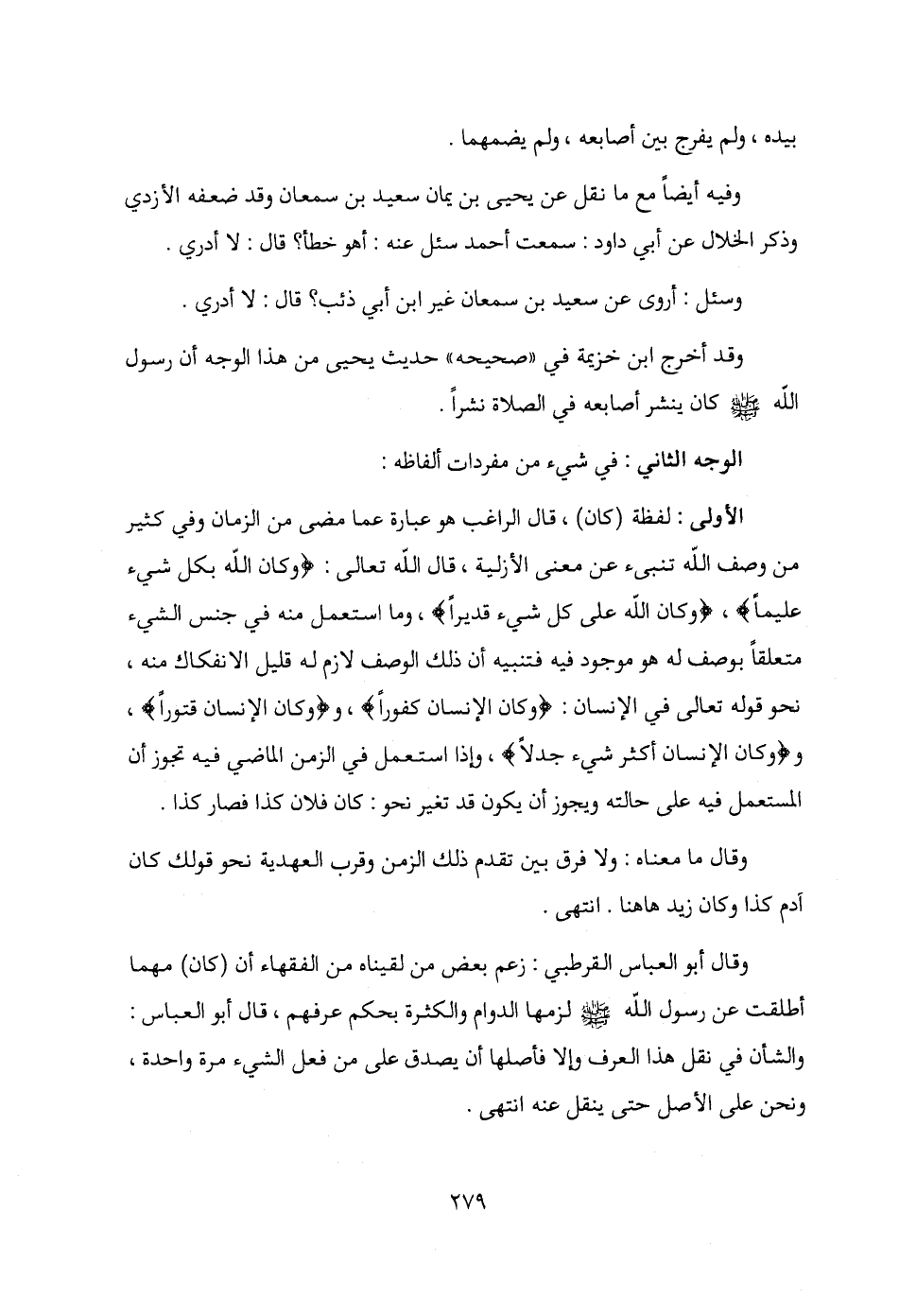 وقد أخرج ابن خزيمة في "صحيحه" حديث يحيى من هذا الوجه أن رسول الله - صلى الله عليه وسلم - كان ينشر أصابعه في الصلاة نشرًا.