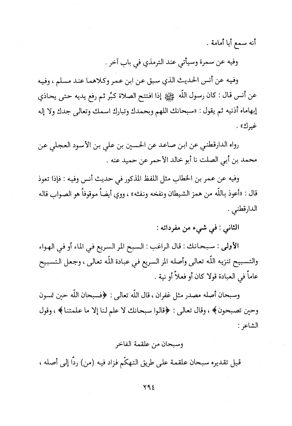 الأولى: سبحانك: قال الراغب: السبح المر السريع في الماء أو في الهواء والتسبيح تنزيه الله تعالى وأصله المر السريع في عبادة الله تعالى، وجعل التسبيح عامًّا في العبادة قولا كان أو فعلًا أو نية.