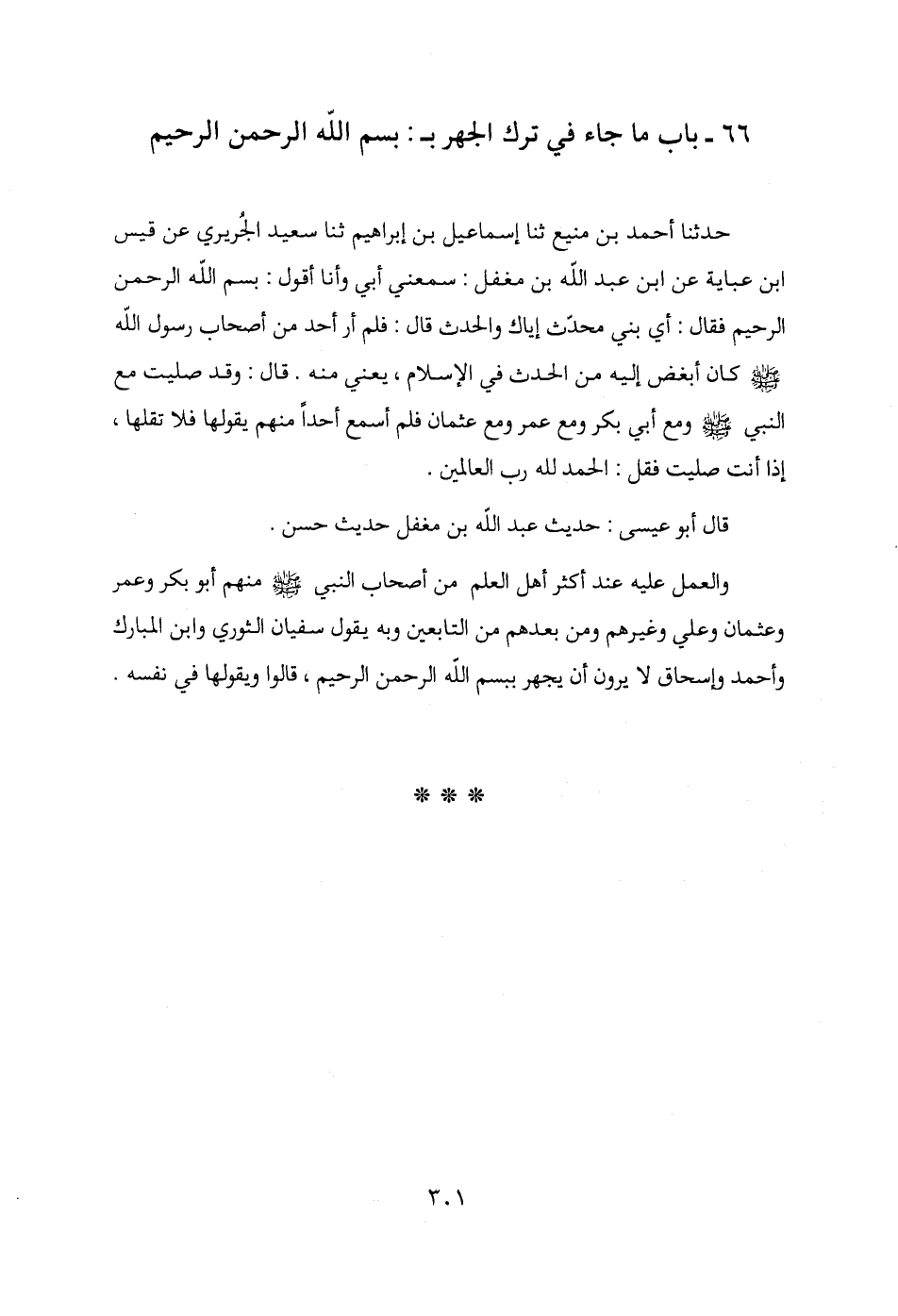 66 - باب ما جاء في ترك الجهر بـ: بِسْمِ اللَّهِ الرَّحْمَنِ الرَّحِيمِ