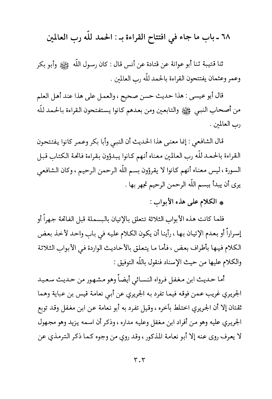 68 - باب ما جاء في افتتاح القراءة بـ: الحمد لله رب العالمين