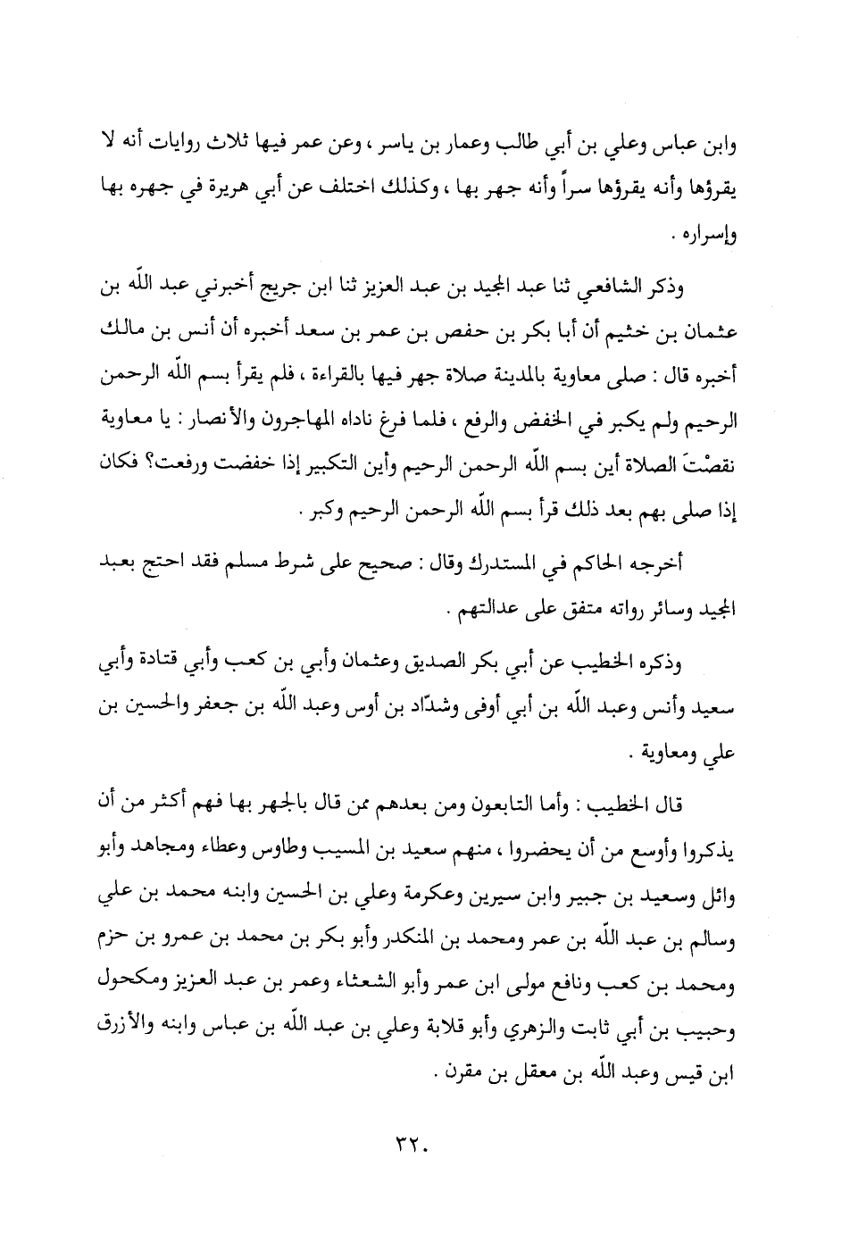 قال الخطيب: وأما التابعون ومن بعدهم ممن قال بالجهر بها فهم أكثر من أن يذكروا وأوسع من أن يحضروا، منهم سعيد بن المسيب وطاوس وعطاء ومجاهد وأبو وائل وسعيد بن جبير وابن سيرين وعكرمة وعلي بن الحسين وابنه محمد بن علي وسالم بن عبد الله بن عمر ومحمد بن المنكدر وأبو بكر بن محمد بن عمرو بن حزم ومحمد بن كعب ونافع مولى ابن عمر وأبو الشعثاء وعمر بن عبد العرْيز ومكحول وحبيب بن أبي ثابت والزهري وأبو قلابة وعلي بن عبد الله بن عباس وابنه والأزرق بن قيس وعبد الله بن معقل بن مقرن.