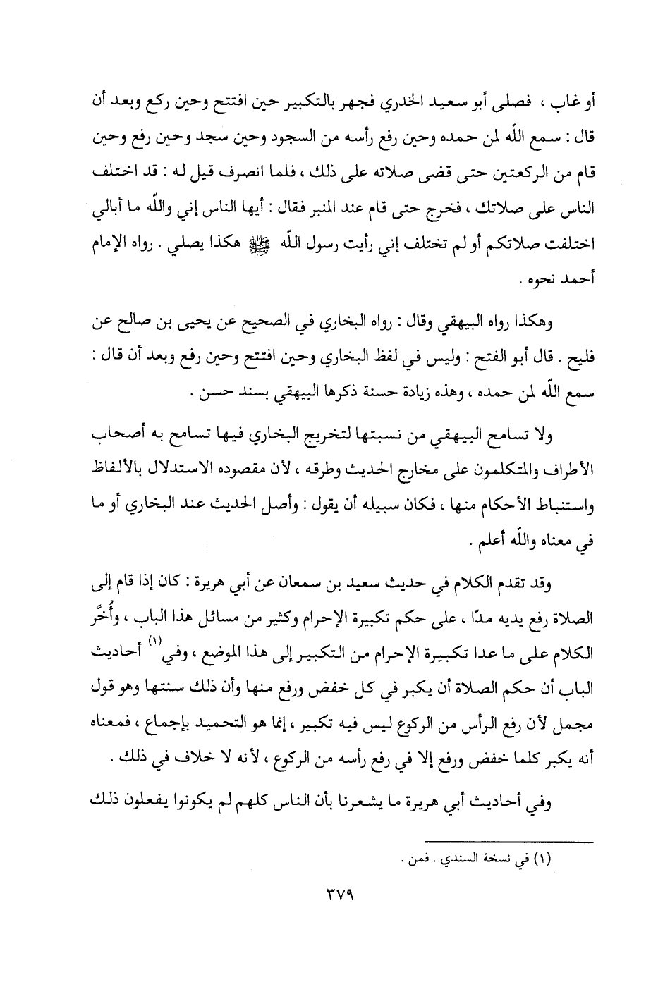 وهكذا رواه البيهقي وقال: رواه البخاري في الصحيح عن يحيى بن صالح عن فليح .. قال أبو الفتح: وليس في لفظ البخاري وحين افتتح وحين رفع وبعد أن قال: سمع الله لمن حمده، وهذه زيادة حسنة ذكرها البيهقي بسند حسن.