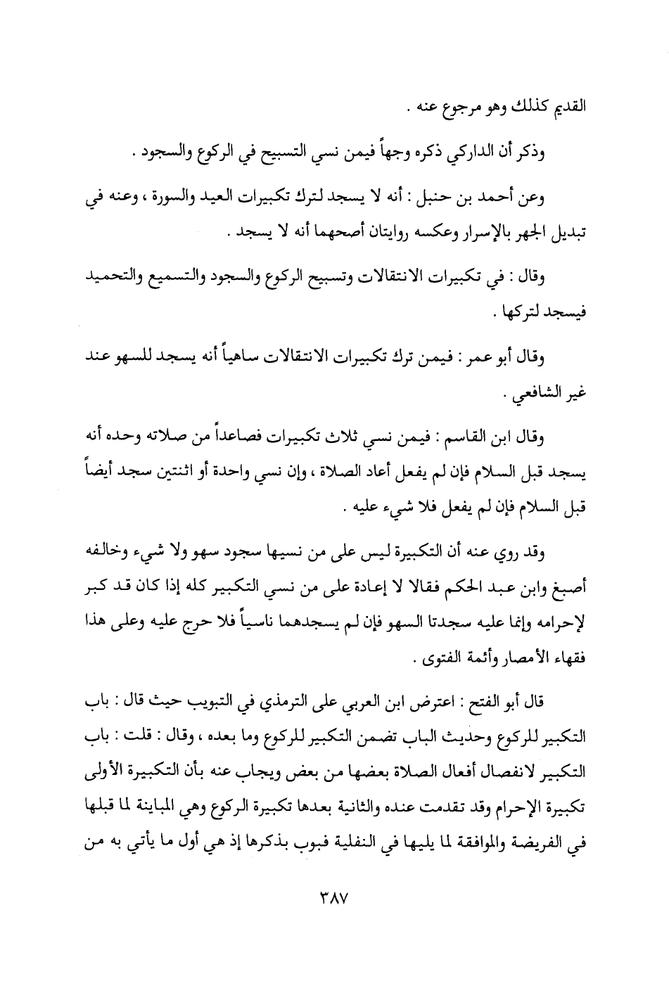 وقال أبو عمر: فيمن ترك تكبيرات الانتقالات ساهيًا أنه يسجد للسهو عند غير الشافعي.