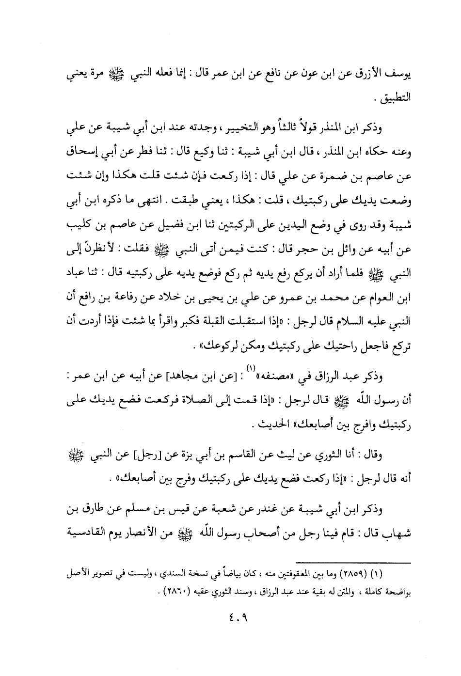 (¬1) (2859) وما بين المعقوفتين منه، كان بياضًا في نسخة السندي، وليست في تصوير الأصل بواضحة كاملة، والمتن له بقية عند عبد الرزاق، وسند الثوري عقبه (2860).